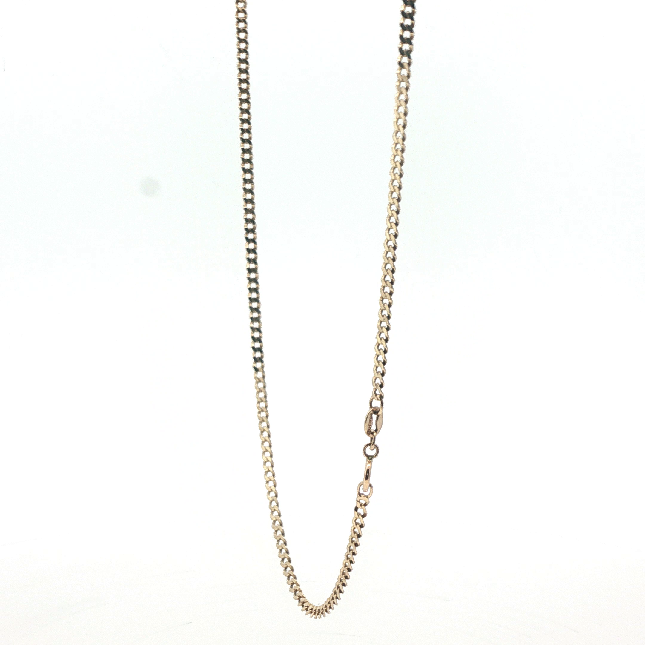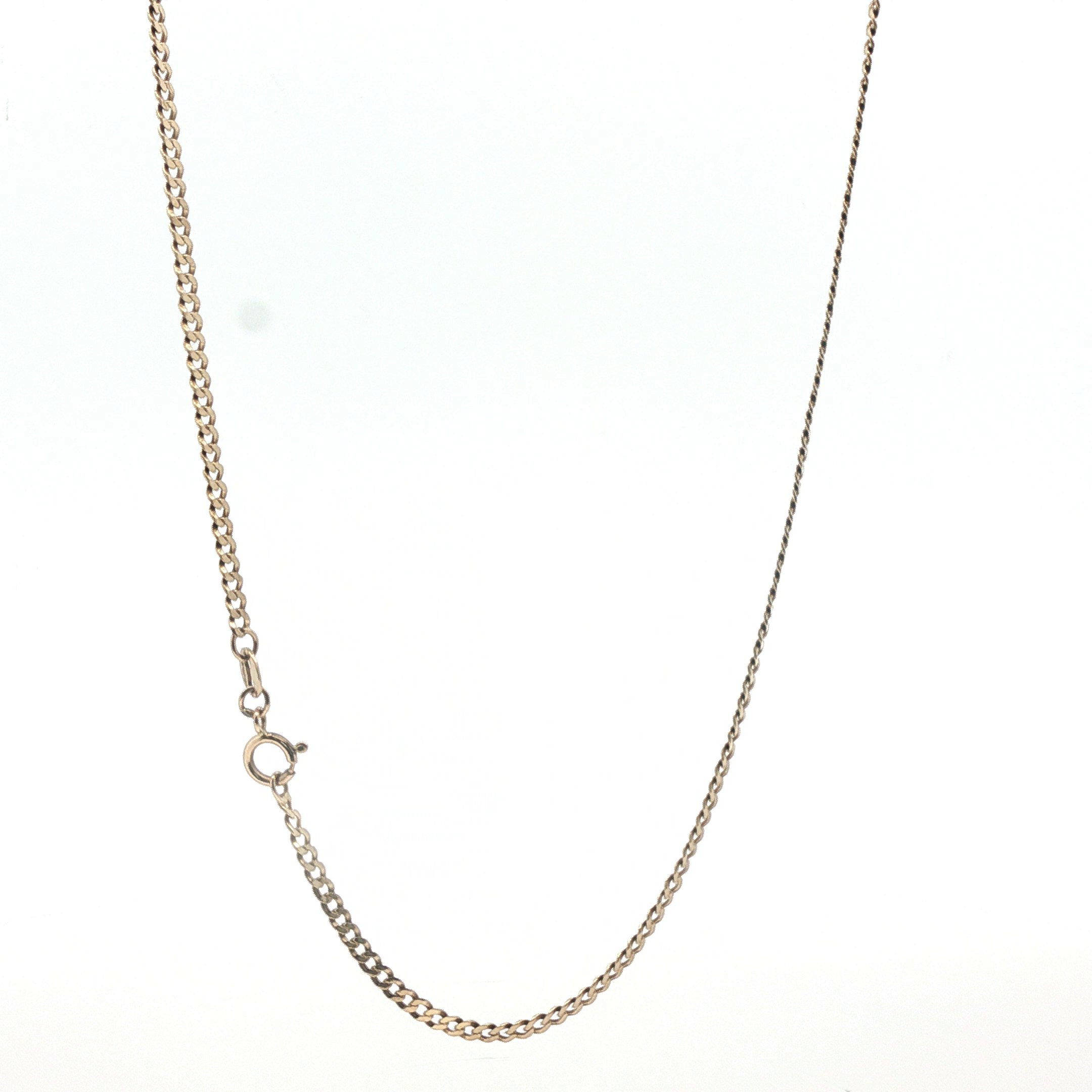 This elegant 18-inch curb chain is crafted from 9-carat gold, offering a timeless design suitable for everyday wear or layering. Weighing just 2.77g, it provides a delicate yet durable piece that won't feel heavy around the neck. As a pre-owned item, it represents excellent value without compromising on quality or authenticity. The classic curb link pattern ensures reliable strength whilst maintaining a refined aesthetic. Perfect for pendant attachment or worn solo, this chain combines versatility with the enduring appeal of solid gold jewellery.