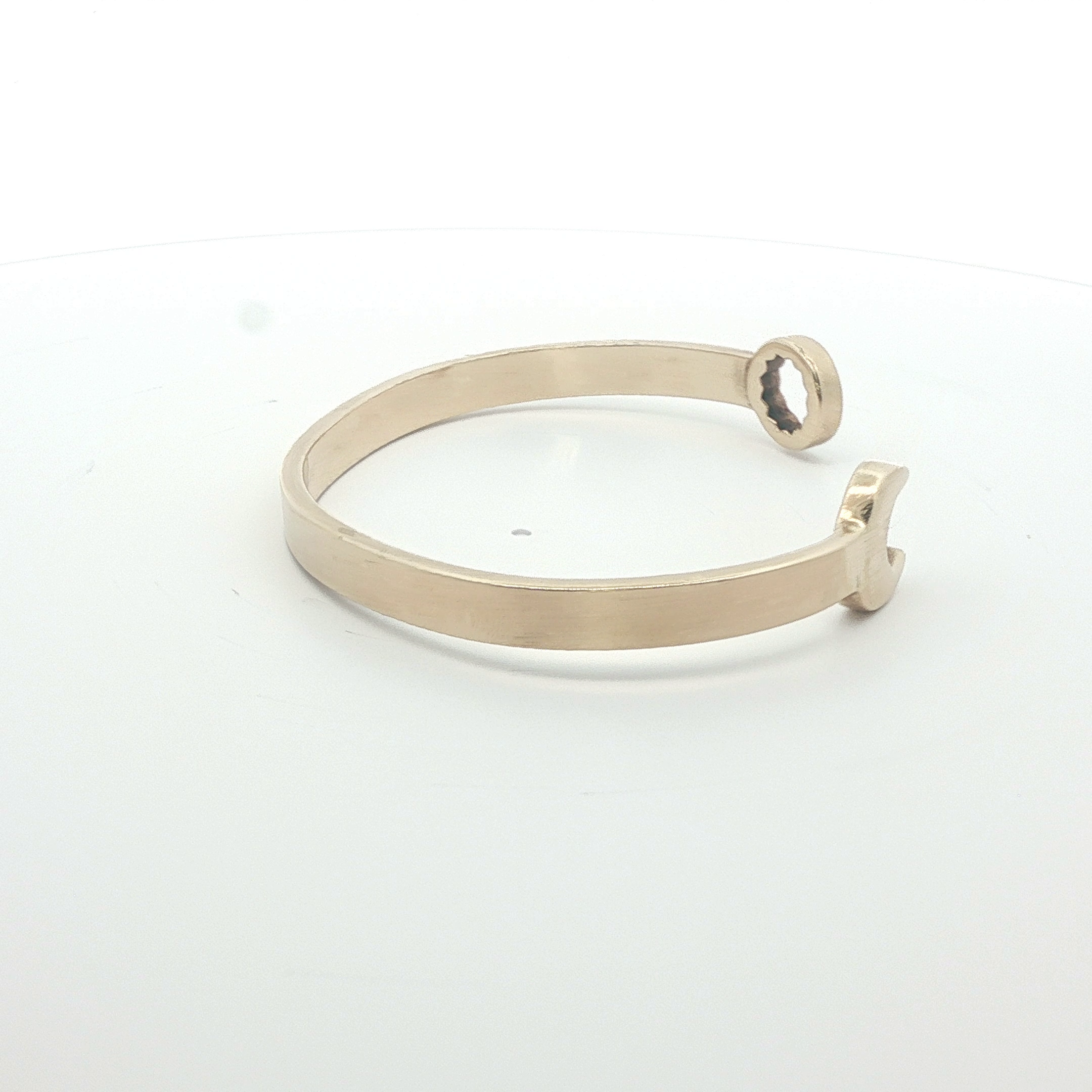 This pre-owned 9ct gold spanner bangle offers timeless elegance with practical appeal. Weighing 14.46g, it features the distinctive open-ended design characteristic of spanner bangles, allowing for easy adjustment to fit most wrists comfortably. The 9ct gold composition ensures durability whilst maintaining a refined aesthetic. At 6.5 inches, this piece strikes an ideal balance between presence and wearability. As a pre-owned item, it carries its own history and character, making it an excellent choice for those seeking authentic gold jewellery with established provenance. Perfect for everyday wear or special occasions.