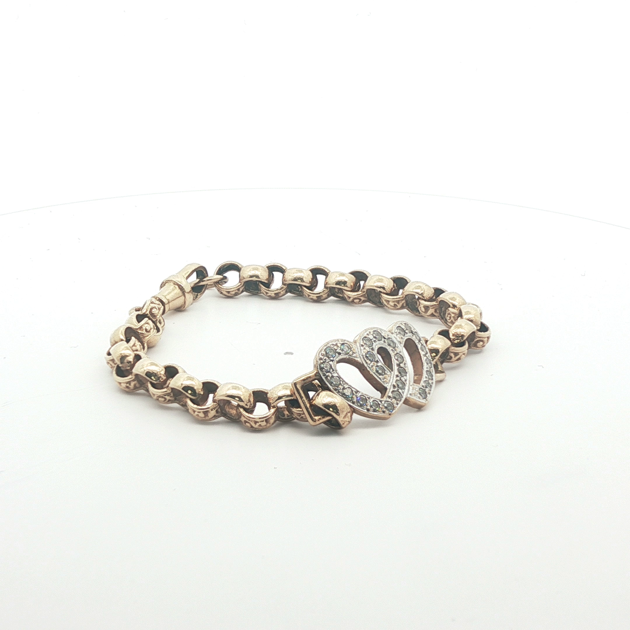 This elegant pre-owned 9ct gold bracelet features a distinctive double heart design set within a classic belcher chain. Measuring 7.5 inches, it offers a refined fit for everyday wear or special occasions. Weighing 16.60g, the piece demonstrates substantial gold content and quality craftsmanship. The double heart motif adds a romantic touch whilst maintaining the timeless appeal of traditional belcher styling. As a pre-owned item, it represents excellent value without compromising on authenticity or durability. An ideal choice for those seeking genuine gold jewellery with character and heritage.