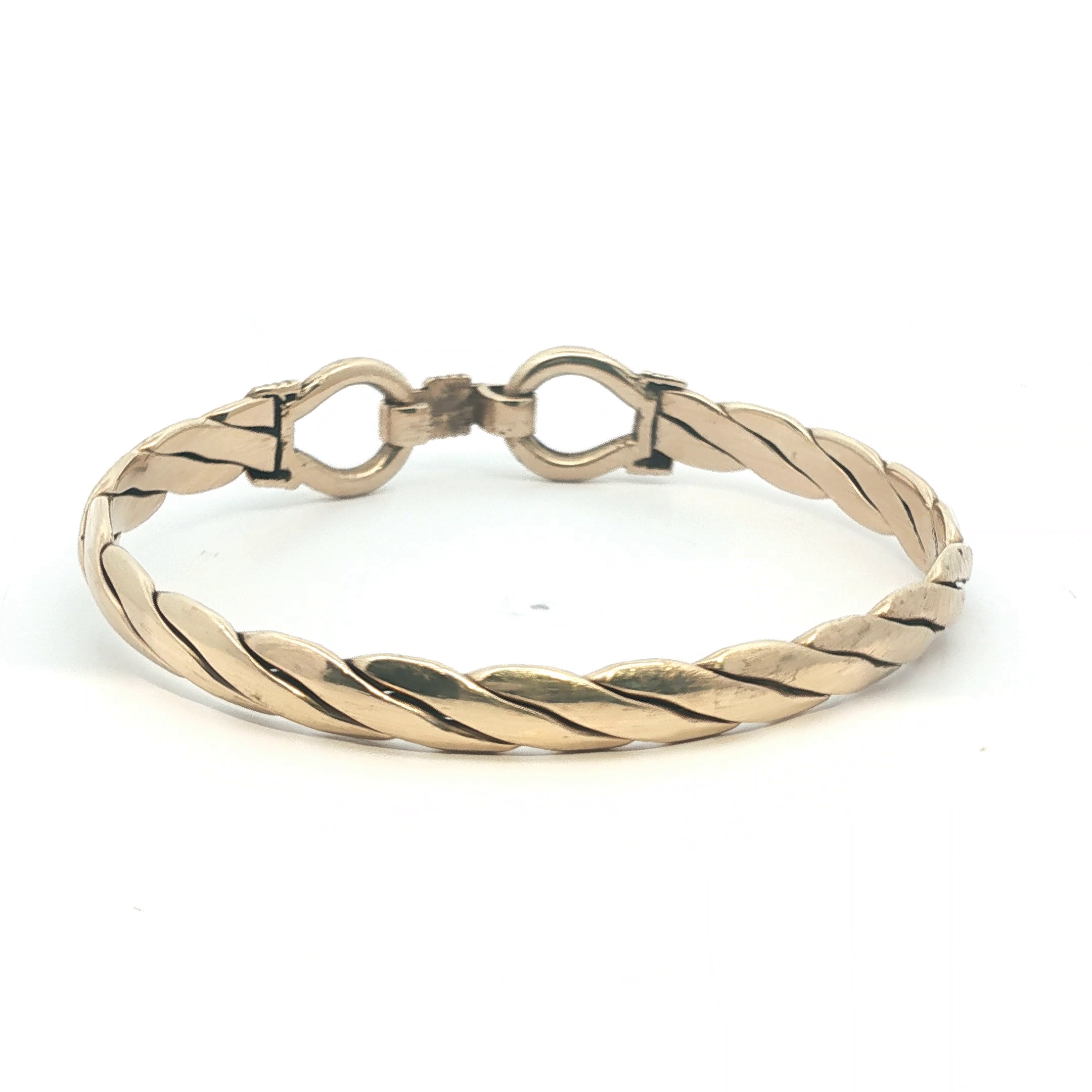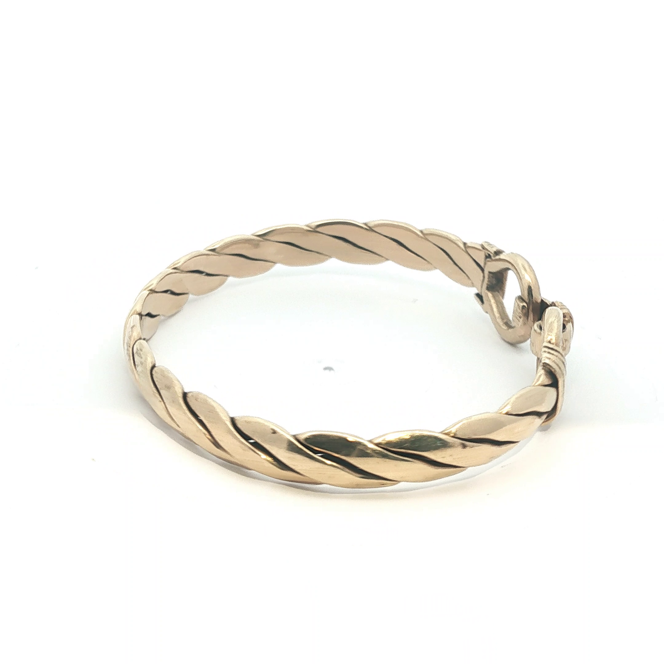 This elegant pre-owned 9ct gold bangle showcases a distinctive double hook design, combining timeless craftsmanship with contemporary appeal. Weighing 34.39g, it offers substantial presence on the wrist whilst maintaining refined proportions. The 7.5'' circumference ensures a comfortable fit for most wearers. As a pre-owned piece, it carries its own character and history, making it an excellent choice for those seeking authentic gold jewellery with both value and distinction. A versatile addition to any collection.