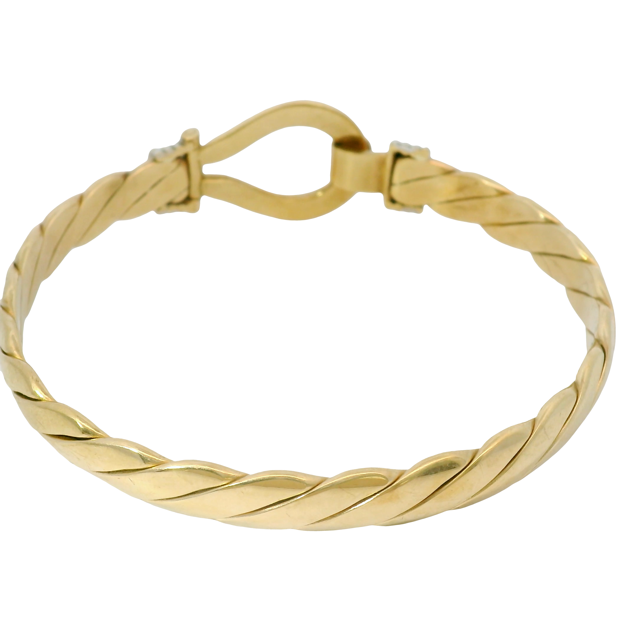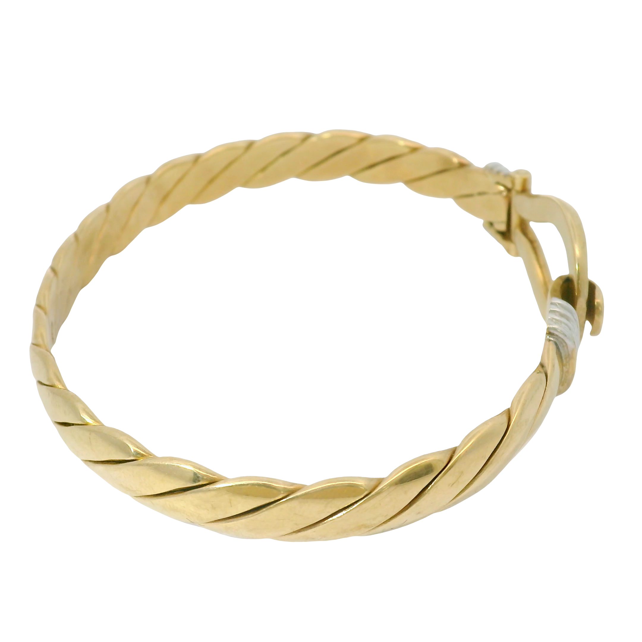 This elegant pre-owned 9CT gold bangle features a secure hook and loop closure system for reliable wear. Measuring 7.5 inches in length, this substantial piece weighs 37.10 grams, demonstrating exceptional value in fine gold jewellery. The classic design offers versatility for both casual and formal occasions, while the durable 9 carat gold composition ensures lasting quality and investment value. The bangle is 8mm wide with a thickness of 2.5mm.