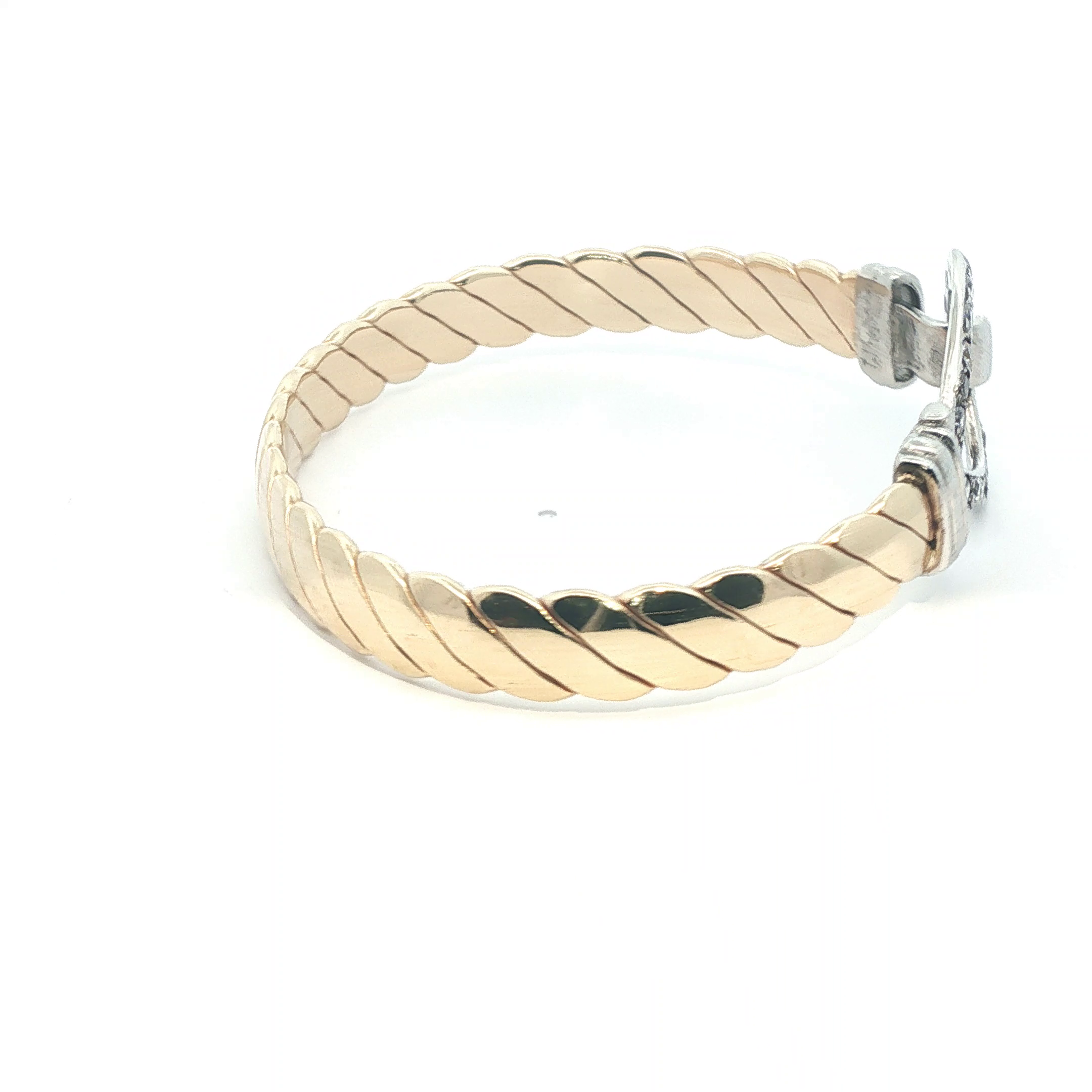 This elegant 7-inch hook bangle showcases timeless sophistication in 9-carat gold. Weighing 36.79g, it features a refined stone-set design that catches the light beautifully, adding a touch of luxury to any jewellery collection. The secure hook fastening ensures comfort and reliability for everyday wear or special occasions. A versatile piece that effortlessly elevates both classic and contemporary styles.
