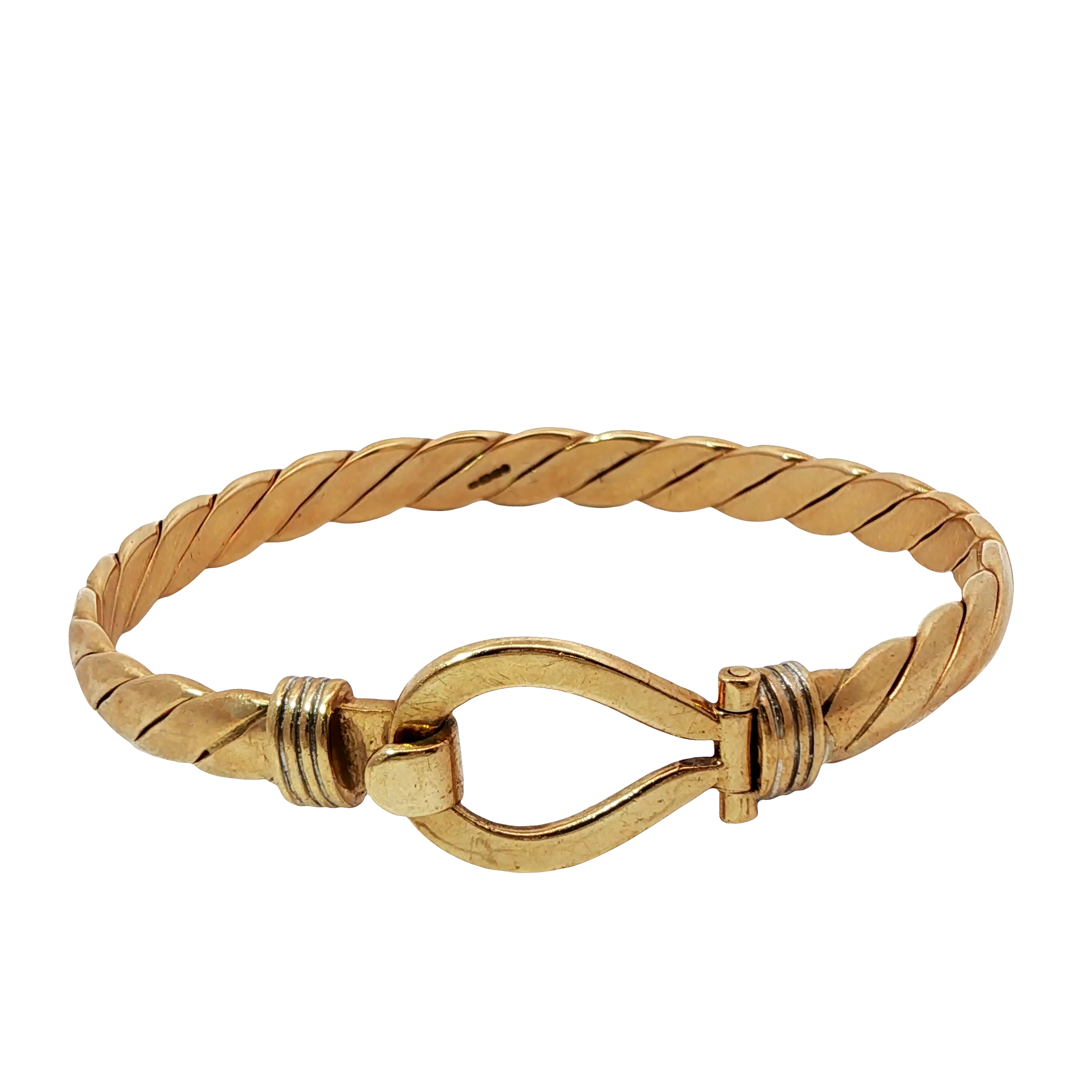 This 7-inch pre-owned 9-carat gold single hook bangle weighs 24.2 grams, offering a substantial and elegant accessory. Crafted from quality 9CT gold, its classic design ensures durability and timeless style. Ideal for those seeking refined sophistication with everyday comfort, this bangle stands out for both its craftsmanship and wearable weight. The band is just over 6mm wide by 2.5mm in thickness.
