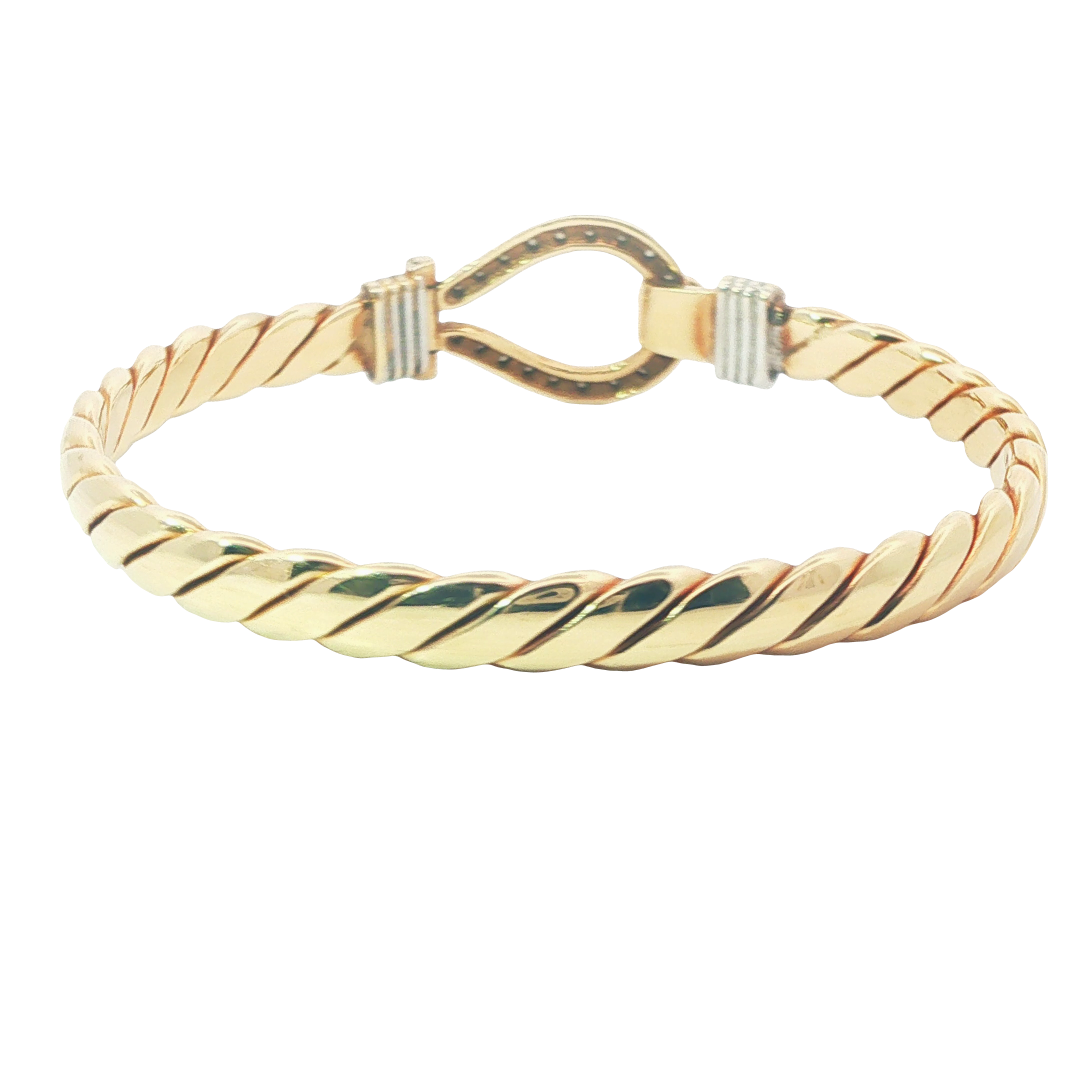 This elegant 7-inch bangle features a sophisticated stone-set design secured with a reliable hook and loop fastening mechanism. Weighing 27 grams, it offers a substantial yet comfortable feel on the wrist. As a pre-owned piece, it carries the character and patina of fine jewellery with history. The stone settings add timeless appeal, making it suitable for both everyday wear and special occasions. An excellent choice for those seeking quality craftsmanship at a more accessible price point.