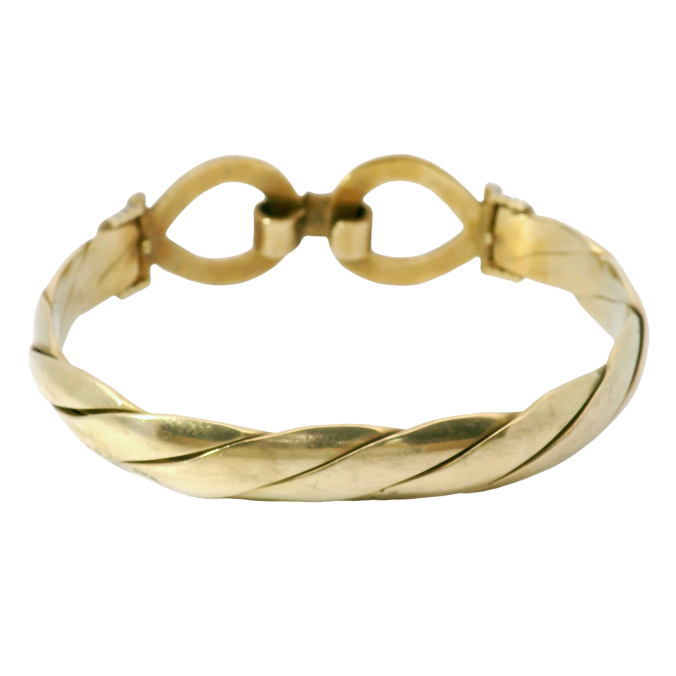 This 8.25” pre-owned 9CT double hook bangle, weighing 70.38 grams, offers a substantial and elegant accessory crafted from quality 9-carat gold. Its double hook design ensures a secure fit while adding a distinctive style element, making it a refined choice for those seeking both durability and sophistication in their jewellery collection. The band is 11.5mm with a thickness of 3.5mm.