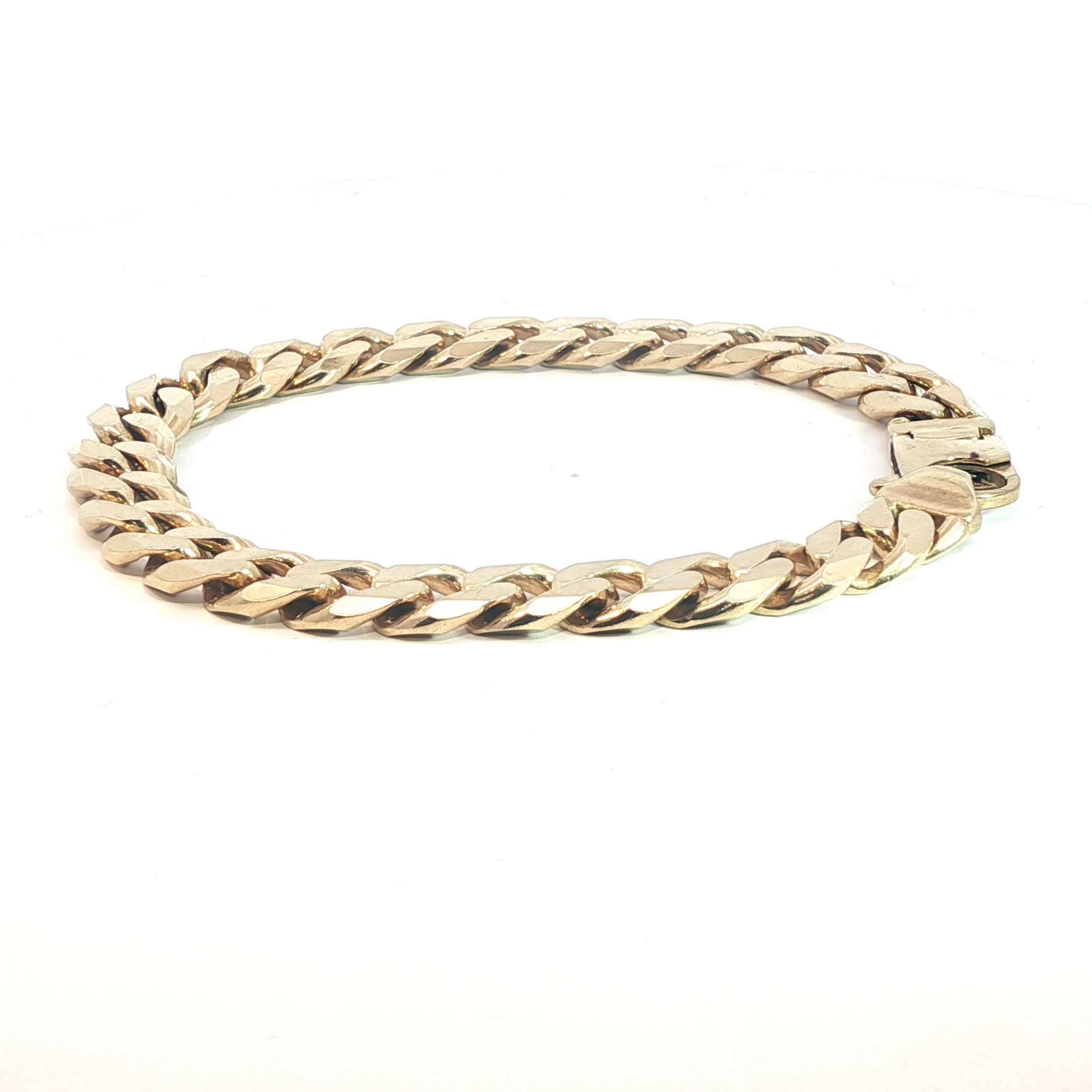 This pre-owned 9ct gold flat curb bracelet combines timeless elegance with substantial weight and quality craftsmanship. Measuring 8.5 inches, it offers a comfortable fit for most wearers, whilst the classic flat curb design ensures versatility for both everyday wear and special occasions. At 38.13 grams, this piece demonstrates the solid construction and genuine gold content that discerning jewellery collectors appreciate. A distinguished addition to any collection, this bracelet represents excellent value as a pre-owned luxury item.