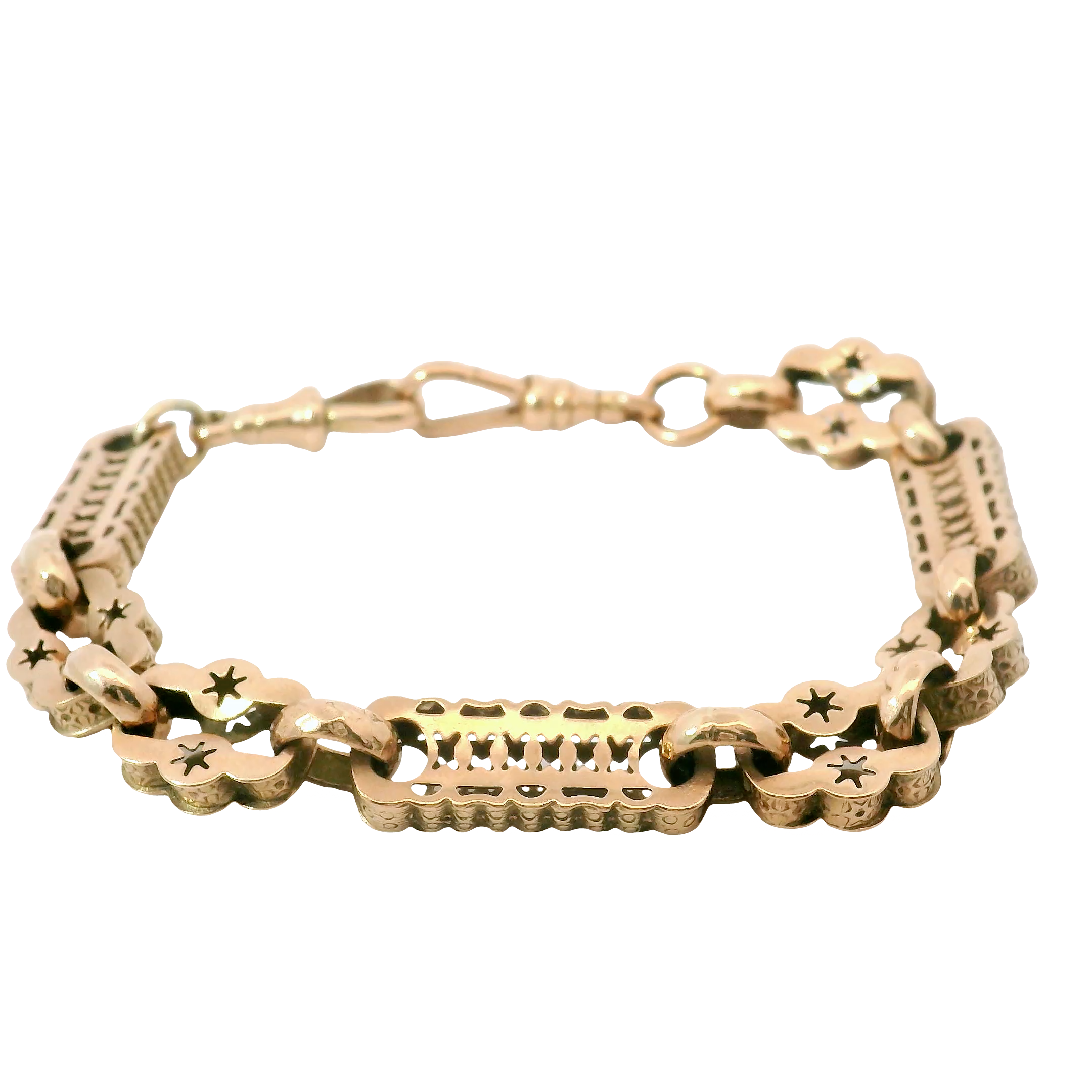 This 8-inch pre-owned bracelet crafted from 9-carat rose gold features a distinctive star and bar design, weighing 17.57 grams. Its elegant rose gold hue offers a warm, sophisticated appeal, making it a versatile accessory for both everyday wear and special occasions. The substantial weight ensures durability while maintaining comfortable wearability. Ideal for collectors or those seeking a refined statement piece with timeless charm.