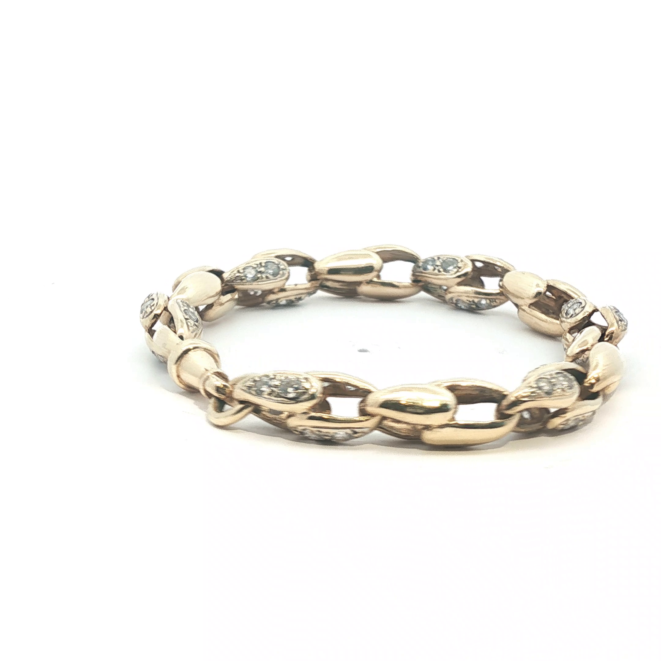 This elegant pre-owned 9ct gold bracelet showcases an exquisite tulip design adorned with carefully set stones. Measuring 8 inches, it offers a refined fit for everyday wear or special occasions. Weighing 25.61g, the substantial gold content ensures lasting quality and timeless appeal. A sophisticated piece that combines classic craftsmanship with distinctive floral artistry, perfect for those who appreciate vintage jewellery with enduring charm.