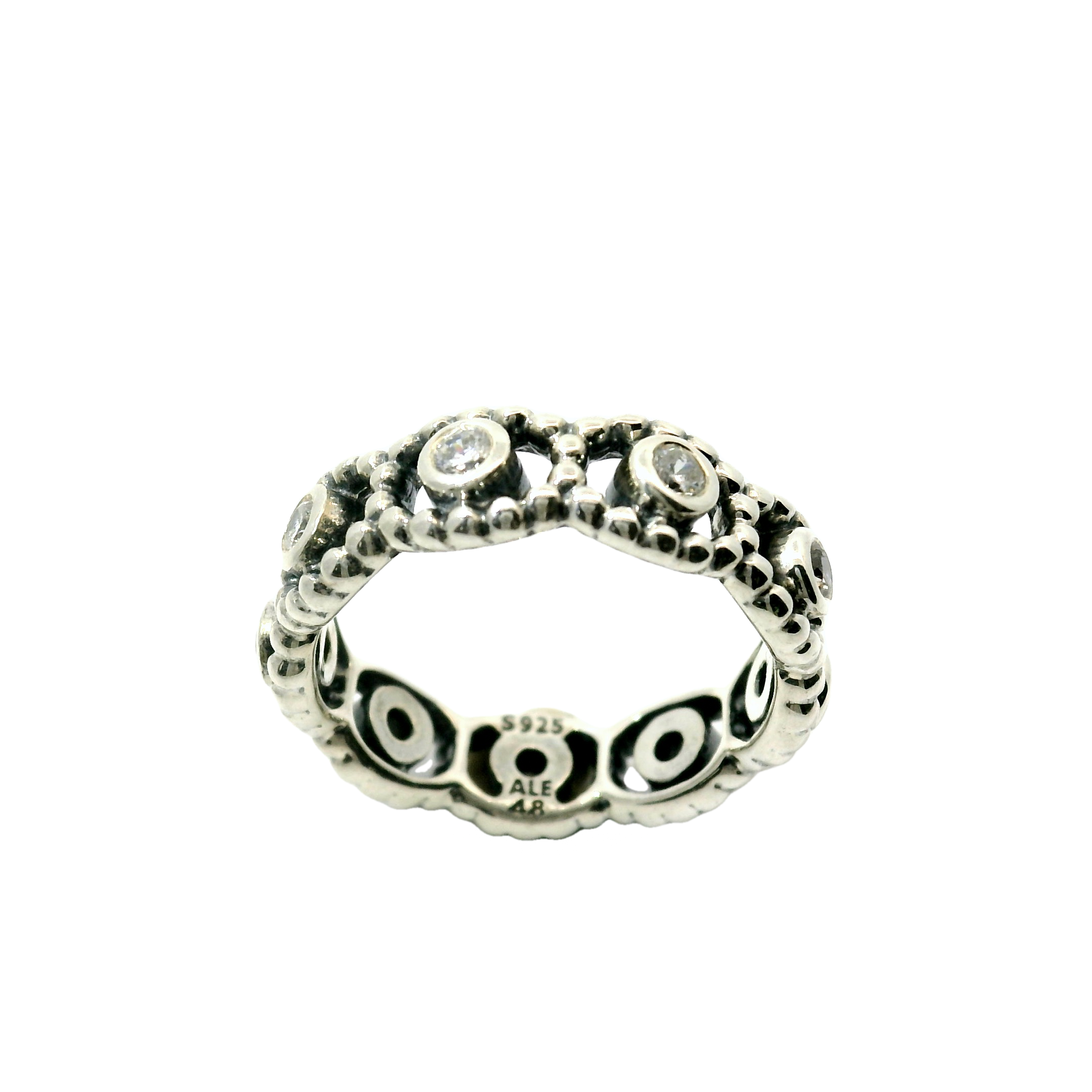 Experience majestic beauty with the Genuine PANDORA 190881CZ Silver Stackable Ring. Crafted with clear zirconia and available in size 15.3 | 4.5 | H1/2 - I1/2 | 48, this ring combines elegance and versatility for a truly special piece. Perfect for stacking or wearing alone, elevate your style with this stunning ring.