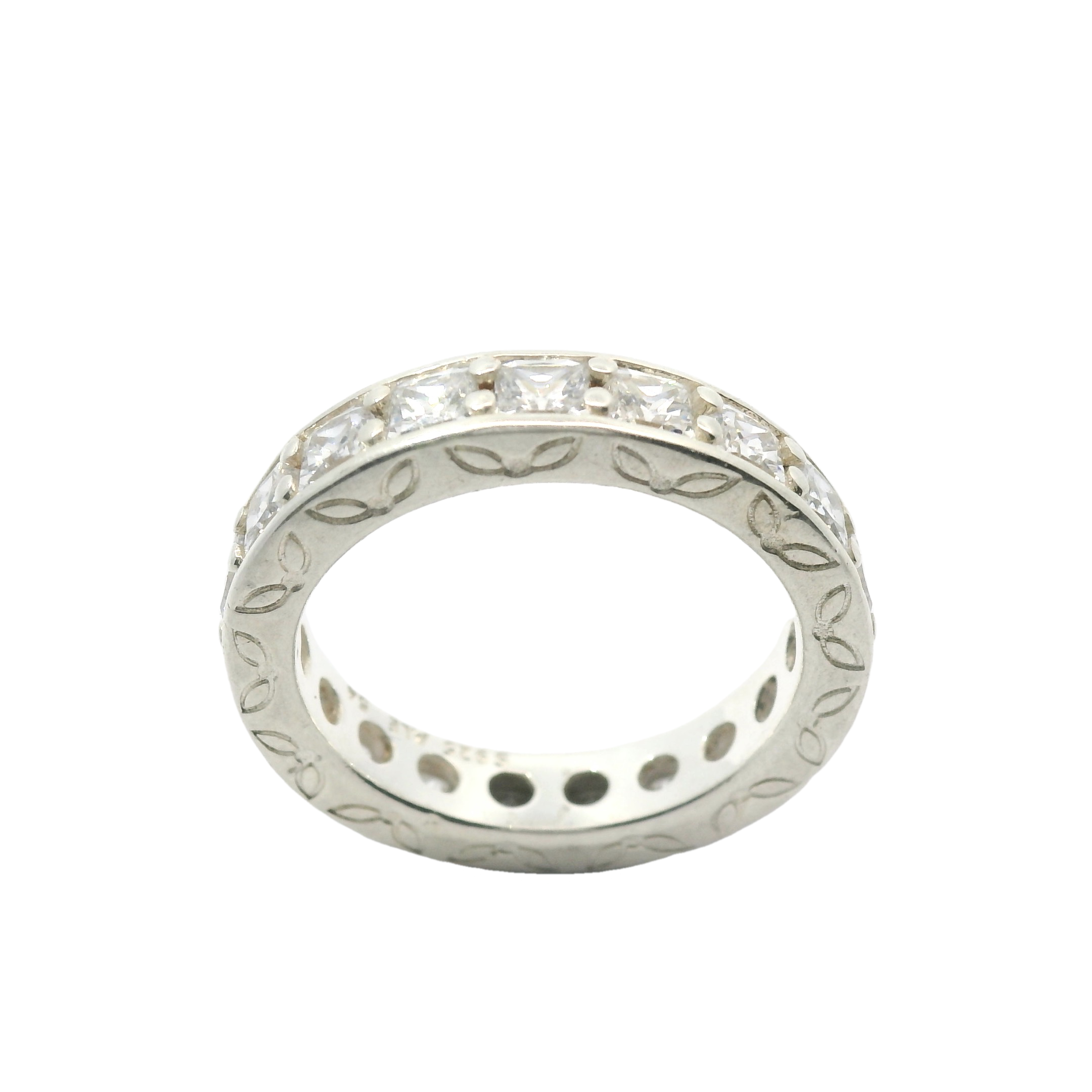 Expertly crafted from sterling silver, the Genuine PANDORA 190894CZ Infinity Ring boasts a timeless design that symbolizes never-ending love. Adorned with sparkling clear CZ stones, this size 17.2 | 7 | N | 54 ring is a must-have for any jewellery collection. Make a statement with this elegant and meaningful piece.