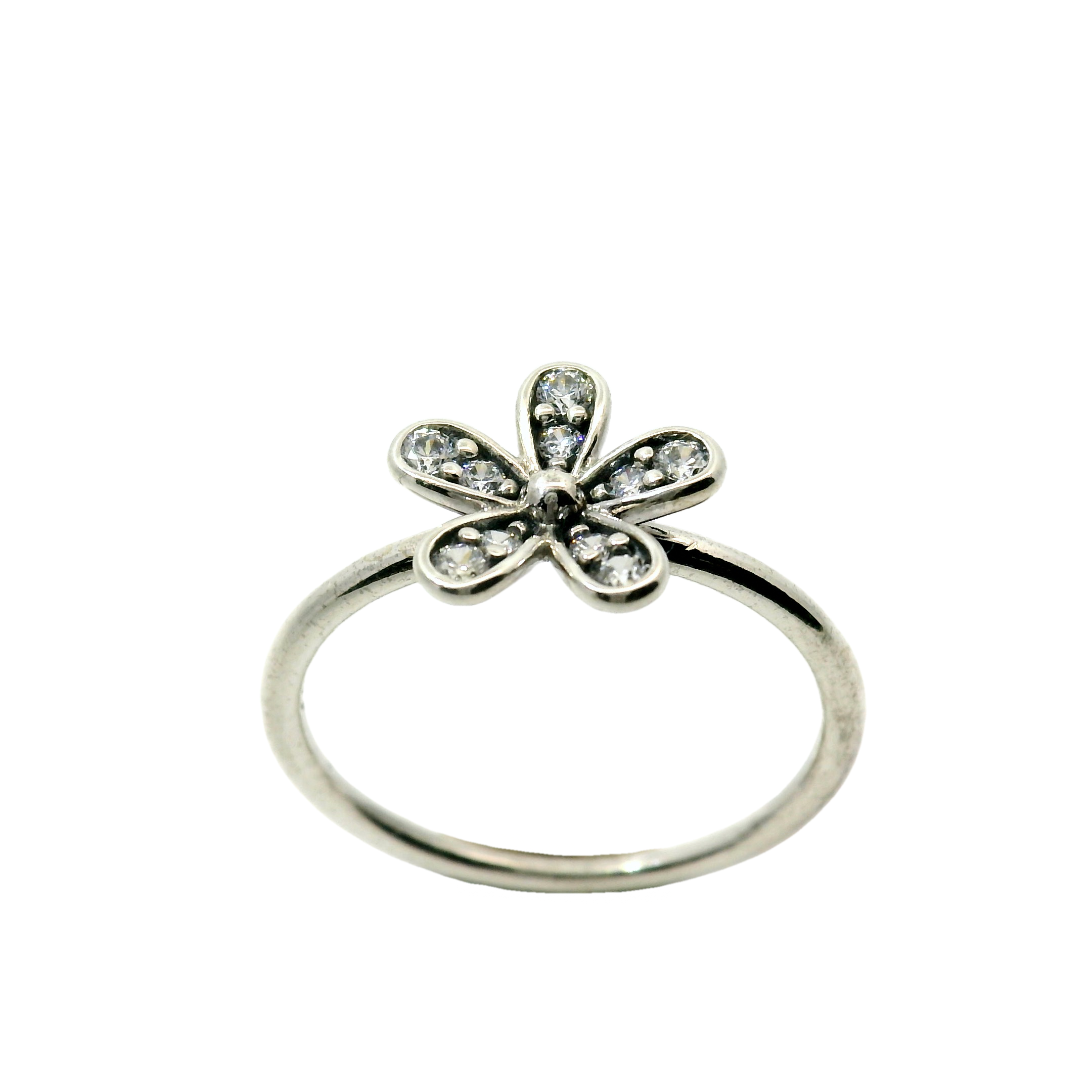 Introducing the Genuine PANDORA 190932CZ Silver Dazzling Daisy Ring, the perfect addition to any jewelry collection. Made with high-quality silver and adorned with dazzling cubic zirconia stones, this ring adds a touch of elegance and sparkle to any outfit. In size 52, 16.5, 6, and L - L1/2.