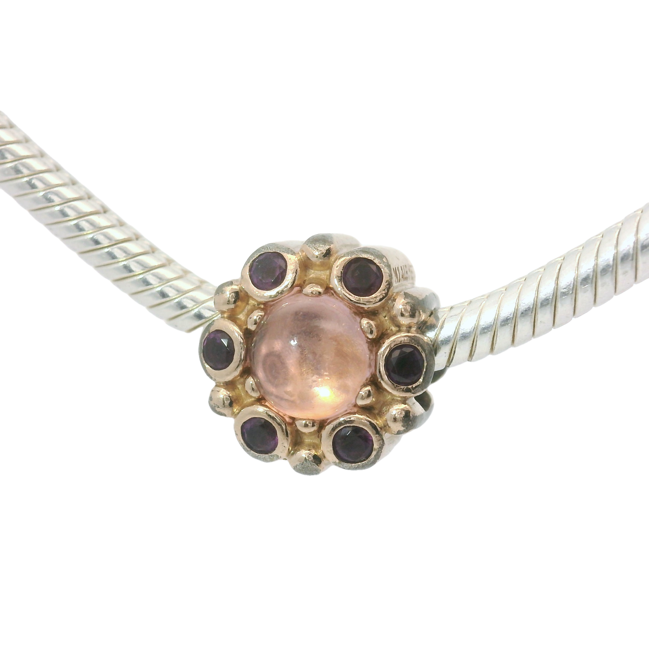 Made of Genuine PANDORA Rose Gold, this 787658NPM charm features a stunning combination of pink and purple colors in a heraldic radiance design. Add a touch of luxury and elegance to your bracelet with this expertly crafted charm.