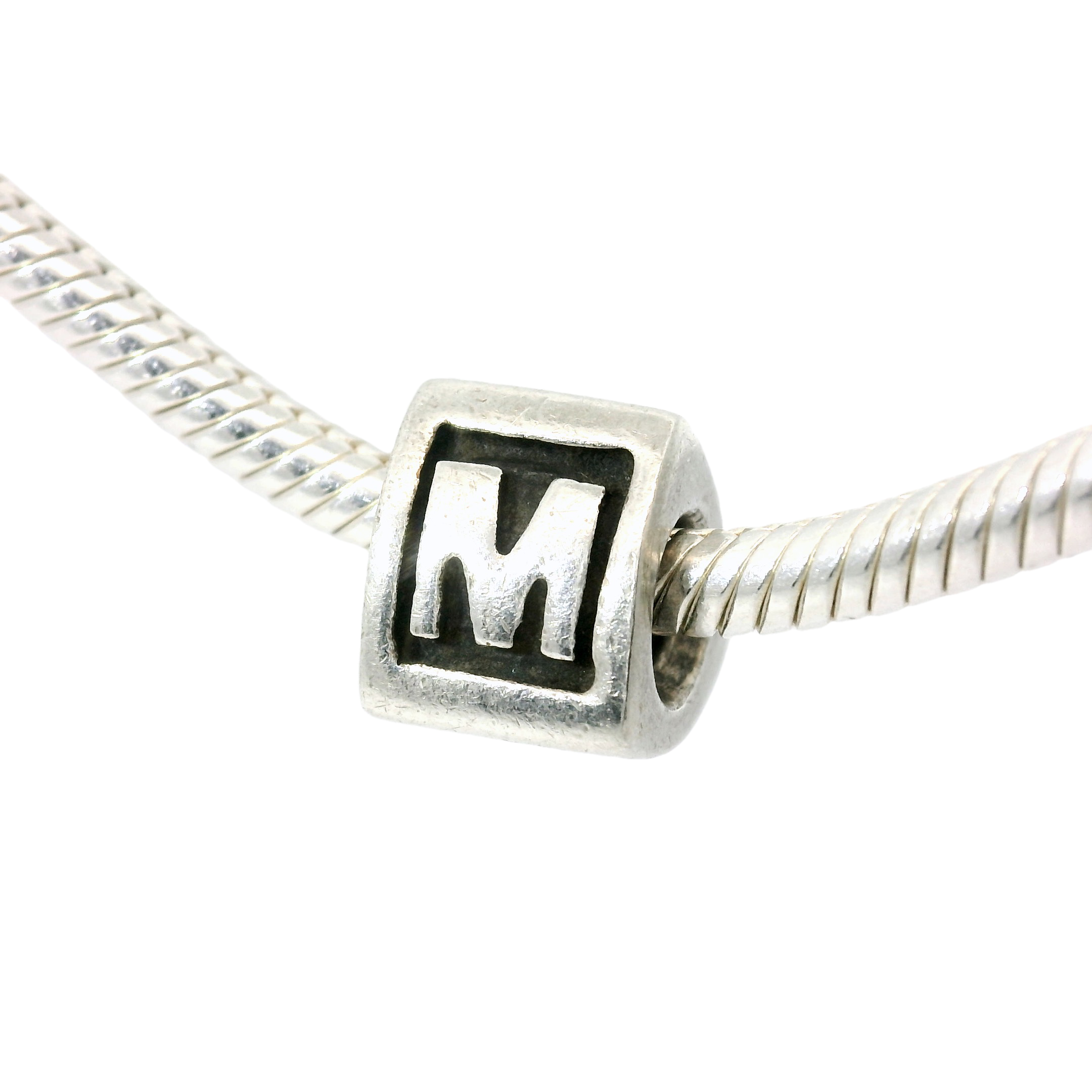 Expertly crafted from genuine PANDORA silver, this charm features the letter M, making it the perfect addition to any PANDORA charm bracelet. Effortlessly personalize your bracelet with this sleek and elegant charm, adding a unique touch to your collection. Trust in the quality and craftsmanship of PANDORA for a truly special accessory.