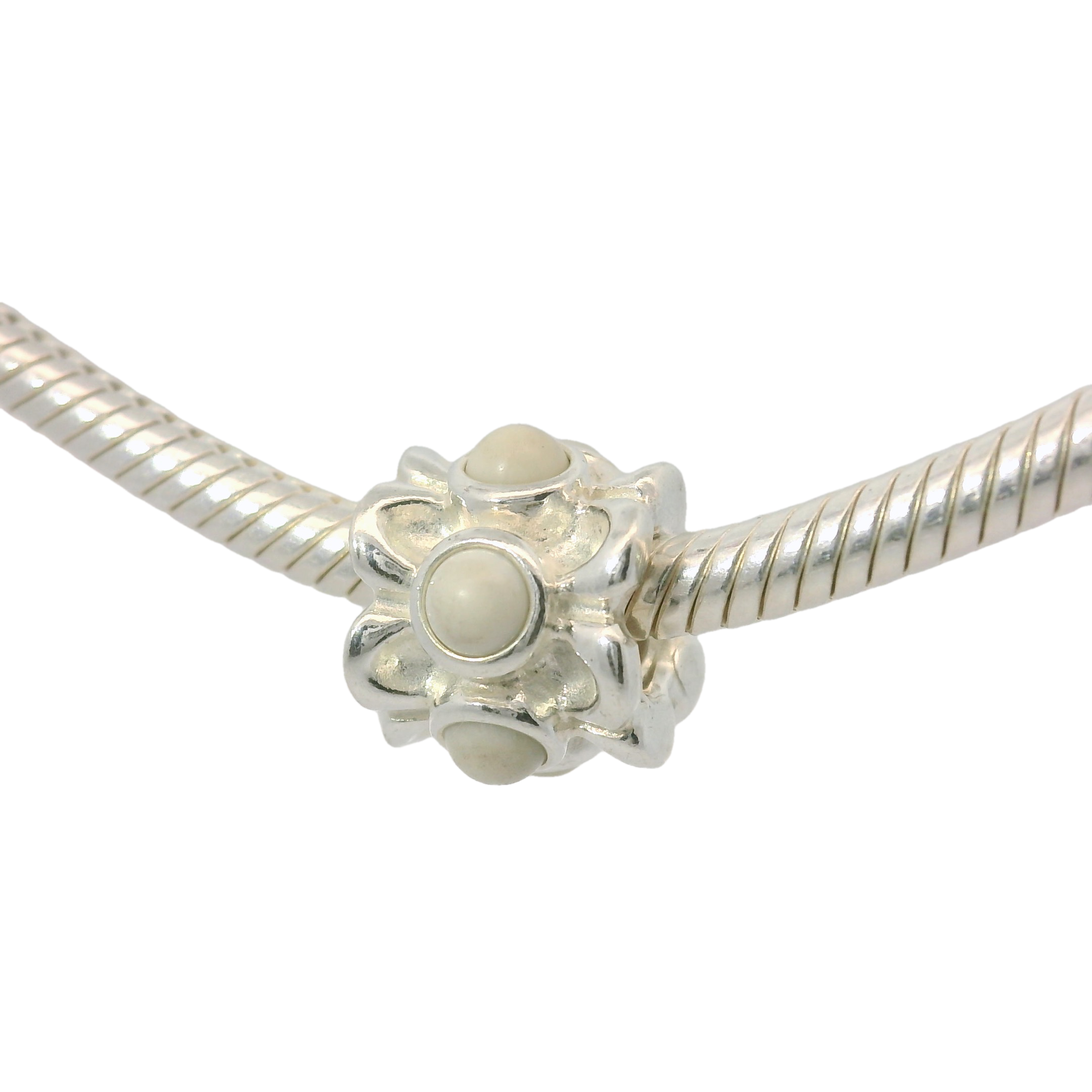 Crafted with a stunning white forget me not agate, the Genuine PANDORA 790470AGW Charm adds a touch of elegance and nature-inspired beauty to your charm bracelet. The perfect accessory to reflect your unique style and add a timeless touch to any outfit.
