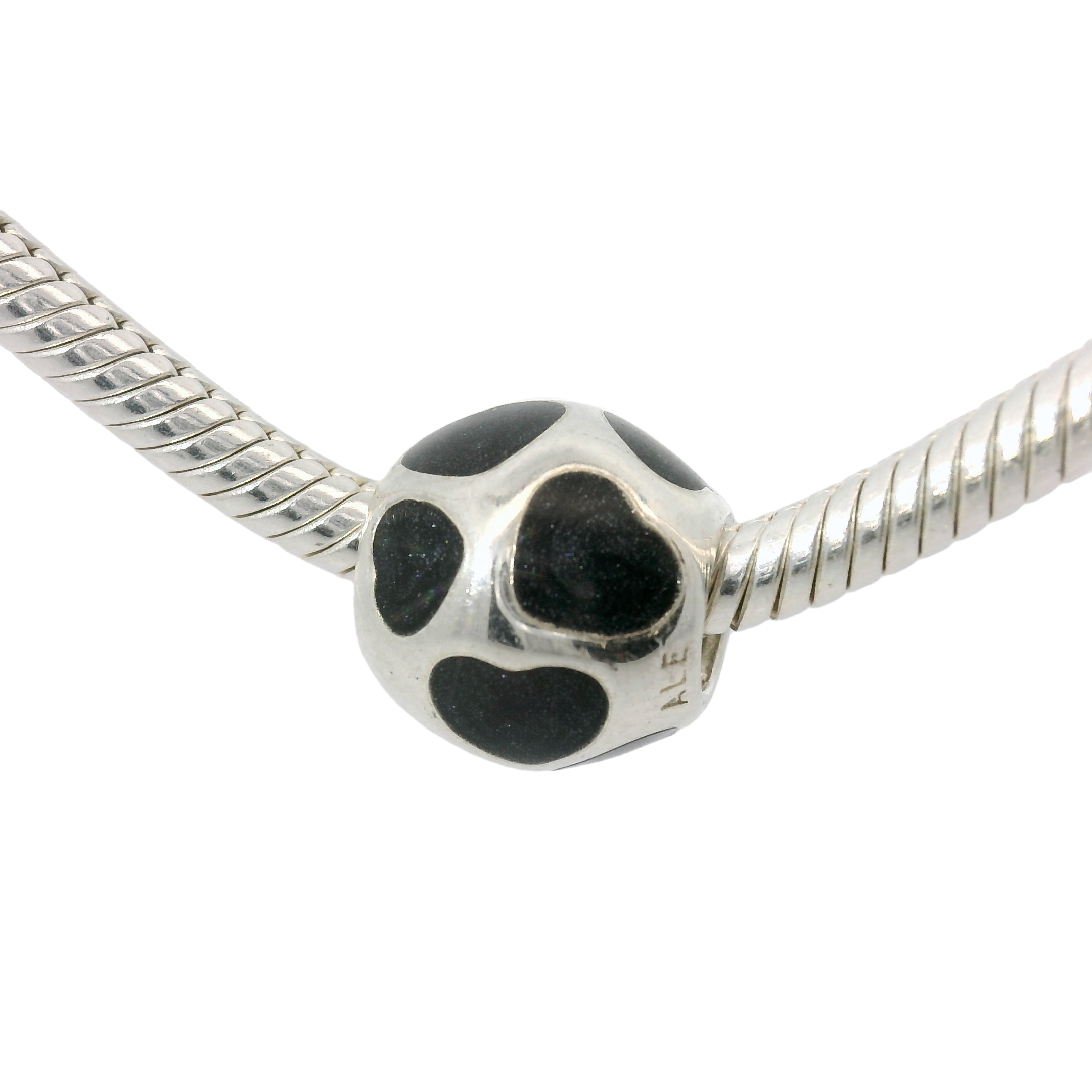 This Genuine PANDORA 790543EN22 Black Enamel Hearts Charm is a beautiful addition to any charm bracelet. Made with high-quality materials, this charm features intricate black enamel hearts, adding a touch of sophistication and elegance. Elevate your style with this stunning charm.
