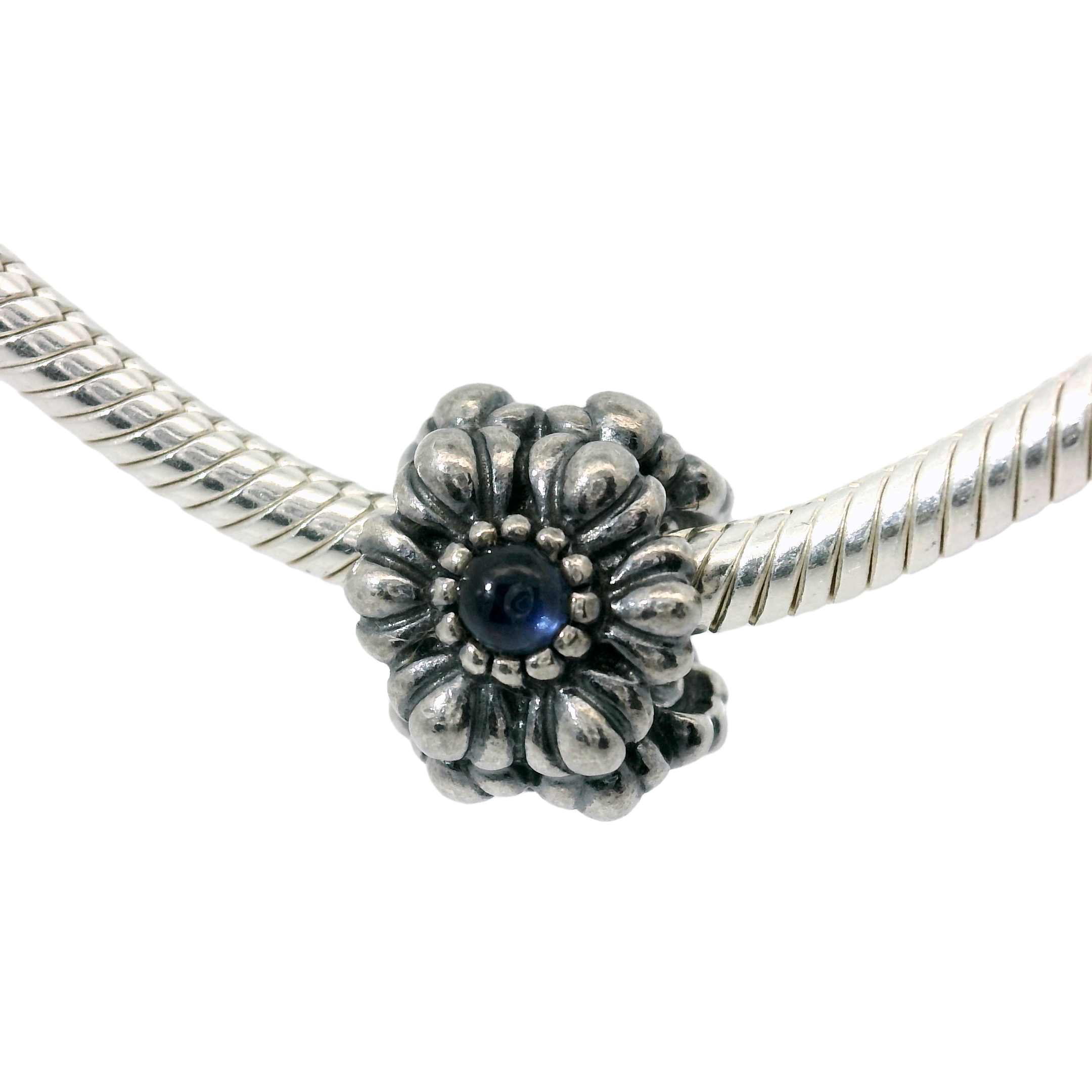 This genuine PANDORA 790580SA Birthday Bloom charm features a vibrant blue Sapphire birthstone, perfect for September birthdays. Add this charm to your PANDORA bracelet for a personalized touch and a pop of color. Crafted with high-quality materials, this charm is sure to make a lasting addition to your jewellery collection.