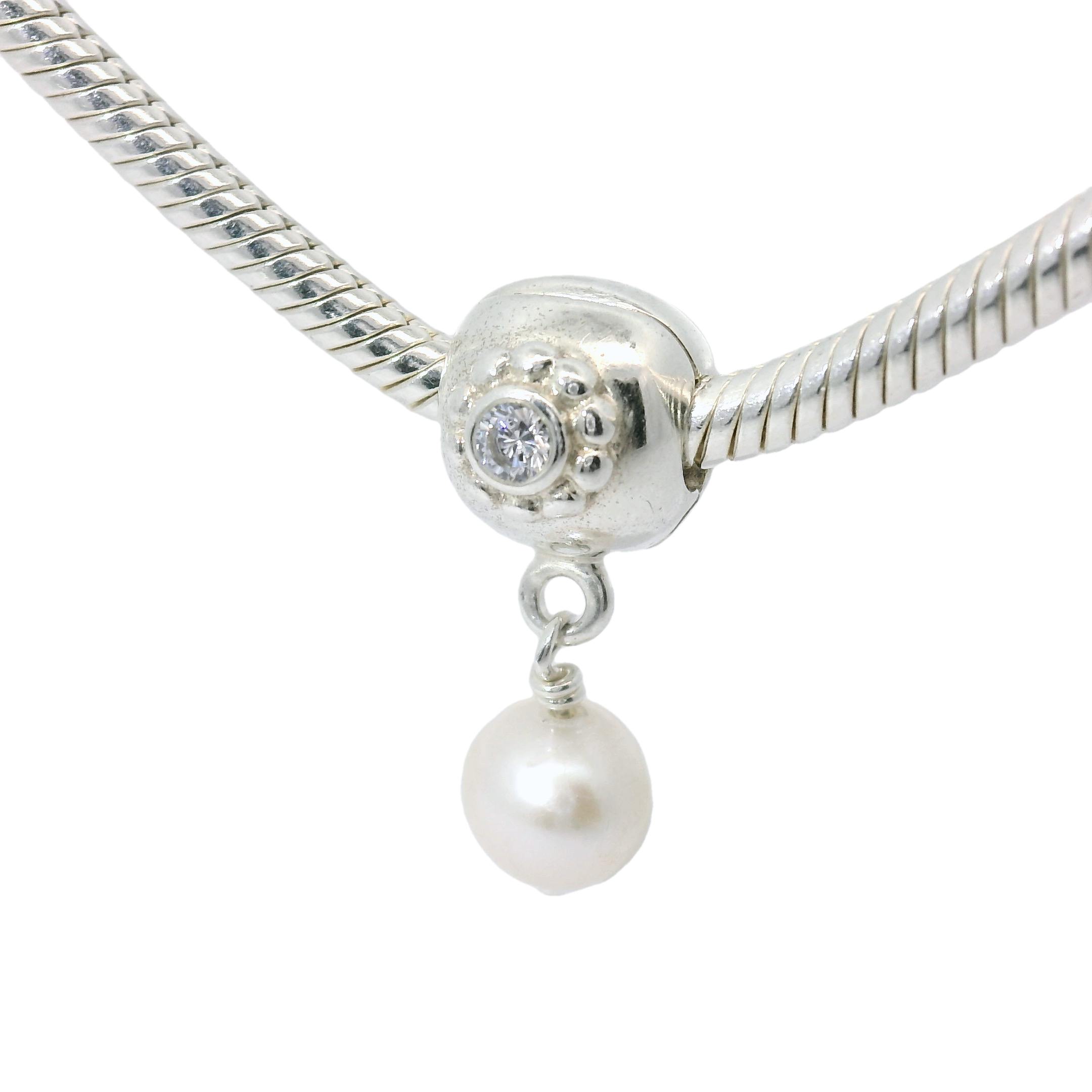 This Genuine PANDORA 790873P Sterling Silver Pearl Dangle Charm is a beautiful addition to any charm bracelet. Made of high-quality sterling silver and featuring a lustrous pearl, this charm exudes elegance and sophistication. Add it to your collection for a touch of timeless beauty.