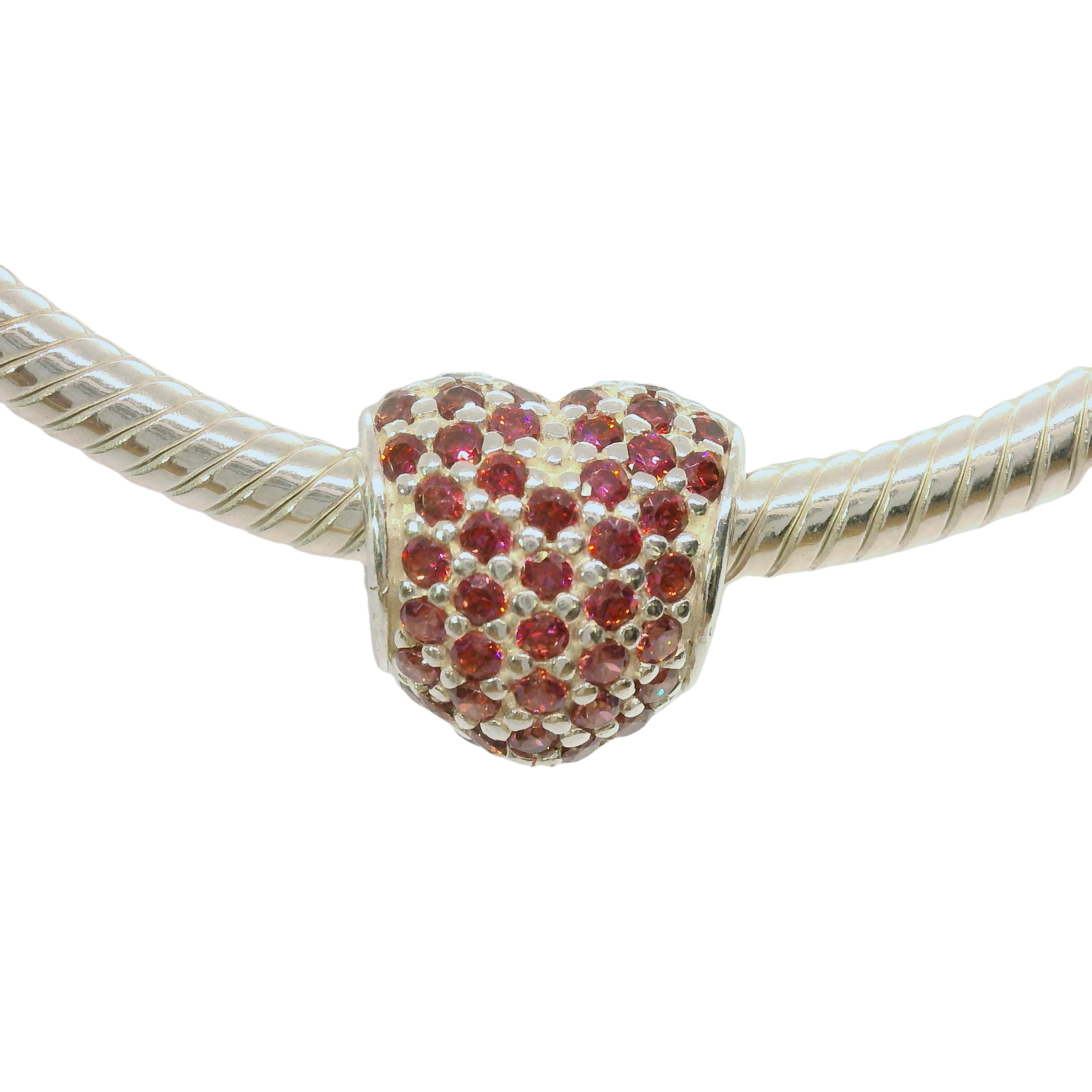 Add a touch of elegance to your PANDORA bracelet with the Genuine PANDORA 791052CZ Silver Sparkling Red Pave Heart Charm. This stunning charm features a sparkling red pave heart design, adding a bold and sophisticated touch to any bracelet. Made with genuine PANDORA silver, this charm is sure to become a beloved addition to your collection.