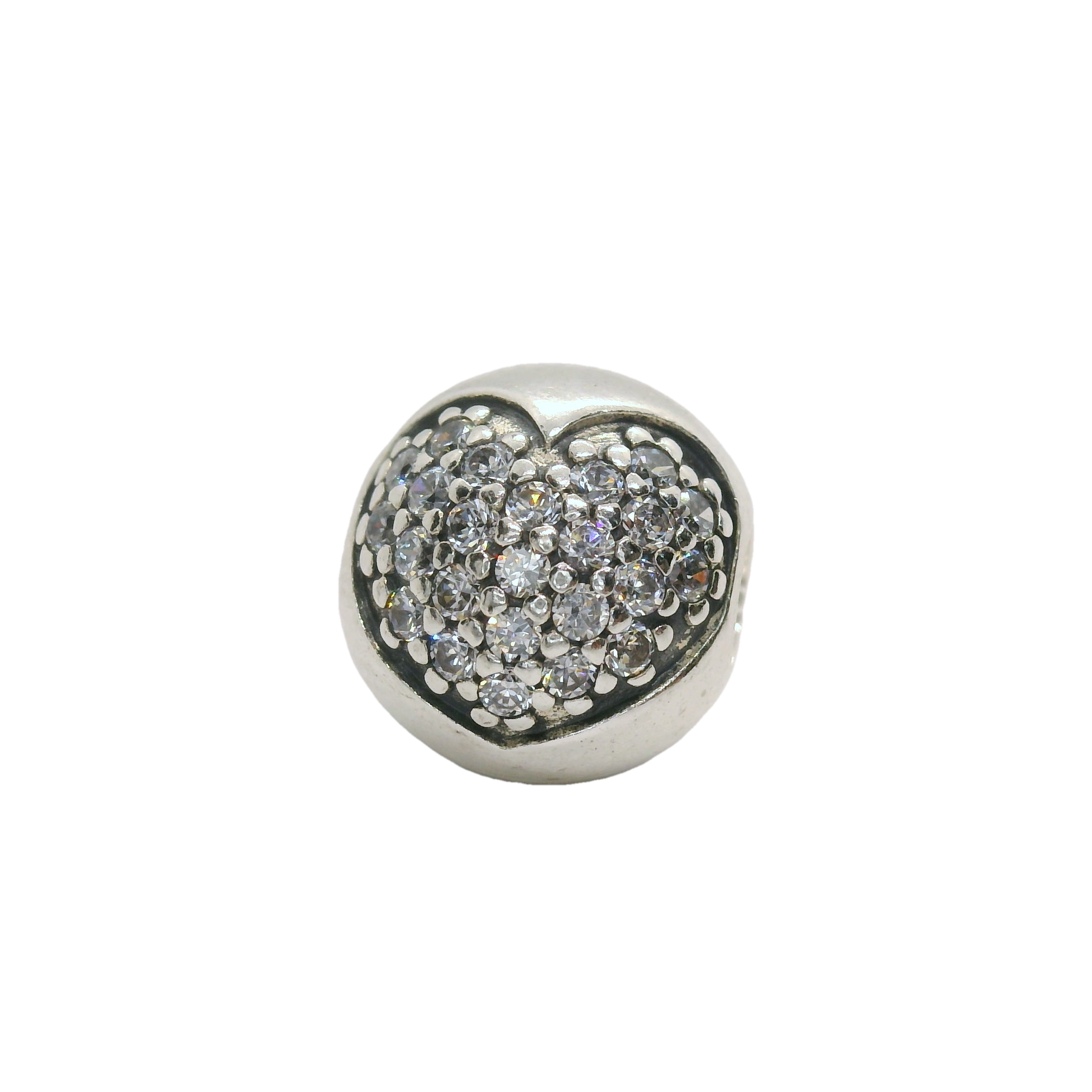 Add a touch of elegance to your PANDORA bracelet with the Genuine PANDORA 791053CZ Clear Pave Heart Clip Charm. Crafted with stunning clear pave, this heart-shaped clip charm will keep your other charms securely in place while adding a touch of sparkle. A must-have for any PANDORA lover.