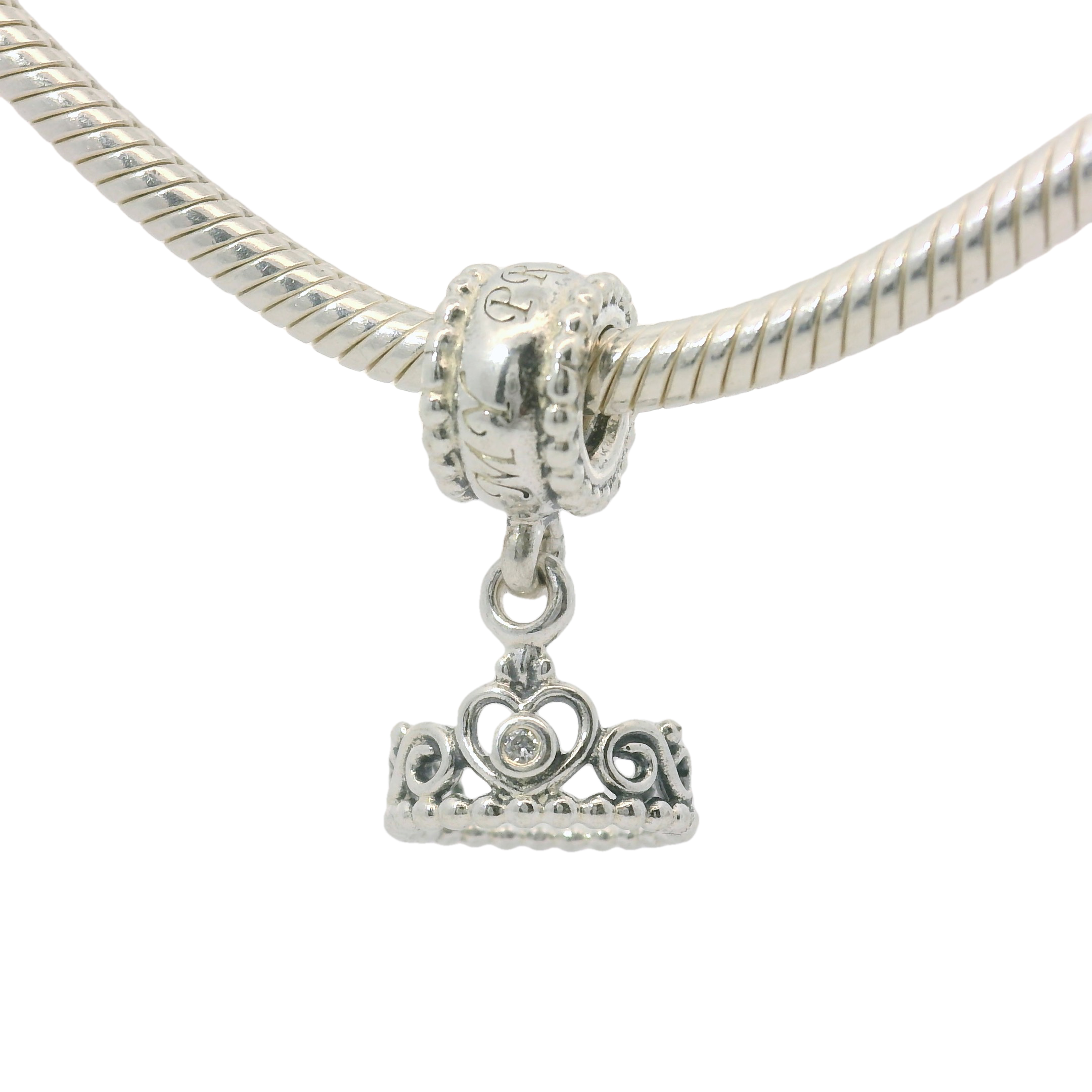 Elevate your charm bracelet with the Genuine PANDORA 791117CZ My Princess Tiara Dangle Charm. Crafted with expert precision and attention to detail, this charming piece features a delicate tiara design adorned with sparkling cubic zirconia stones. Perfect for any princess at heart, this charm is a must-have addition to your collection.
