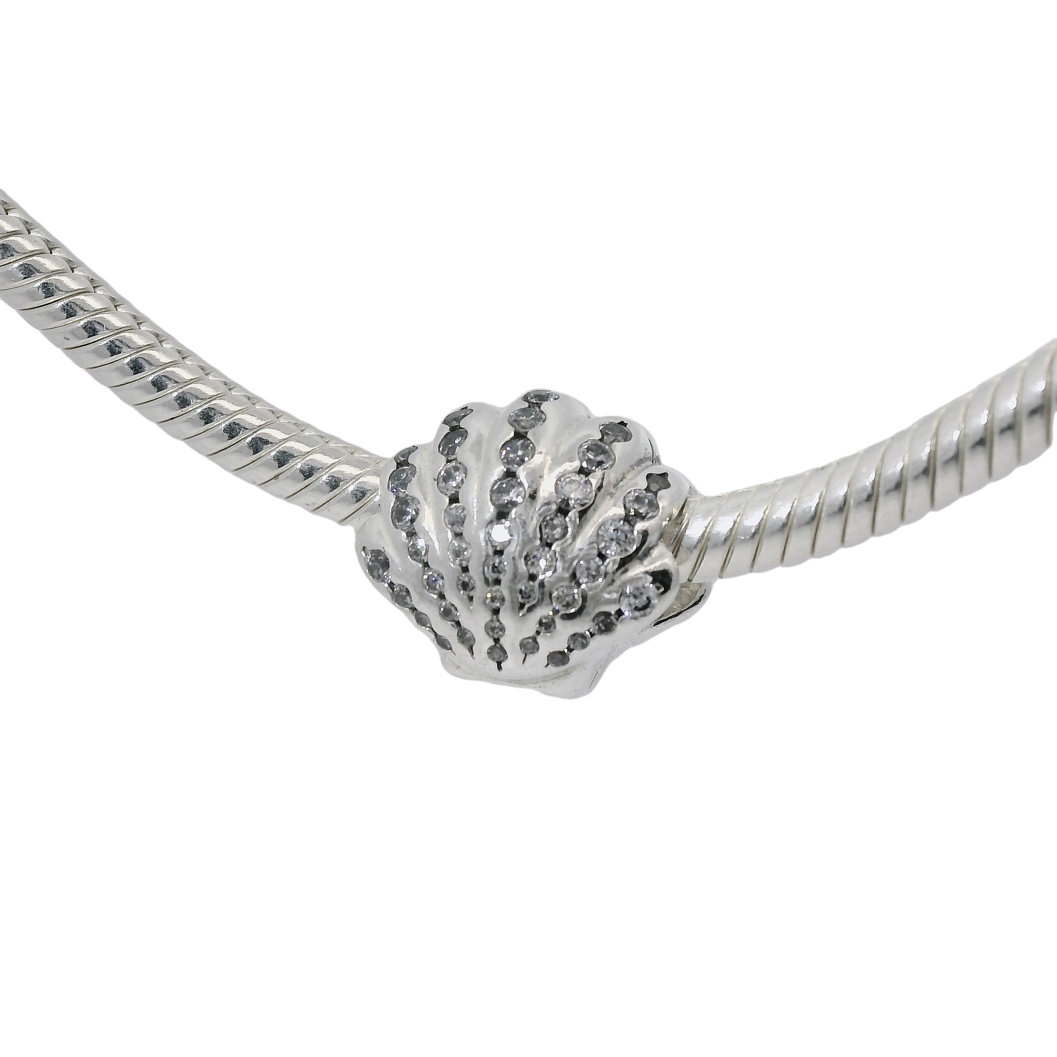 This Genuine PANDORA charm features Ariel's iconic sea shell design with sparkling CZ accents. Add a touch of Disney magic to your bracelet with this beautifully crafted piece. Made with quality materials, this charm is the perfect addition to any Disney Princess collection.