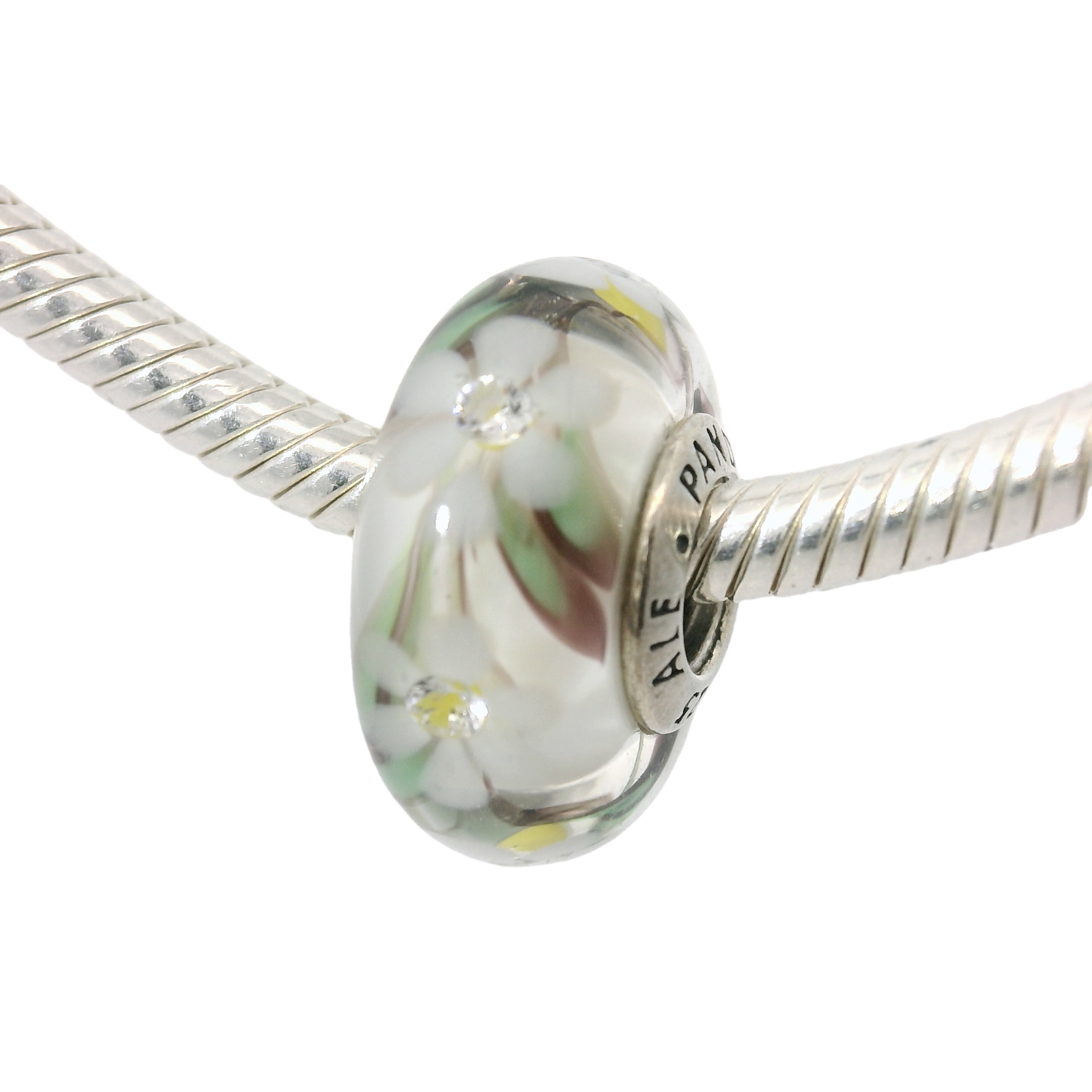 Expertly crafted by PANDORA, the Genuine PANDORA 791638CZ Murano Wild Flowers Clear CZ Charm Only is a stunning addition to any charm bracelet. With delicate wildflower details and sparkling clear CZ stones, this charm is a beautiful representation of nature's beauty. Enhance your bracelet with this exquisite charm today.