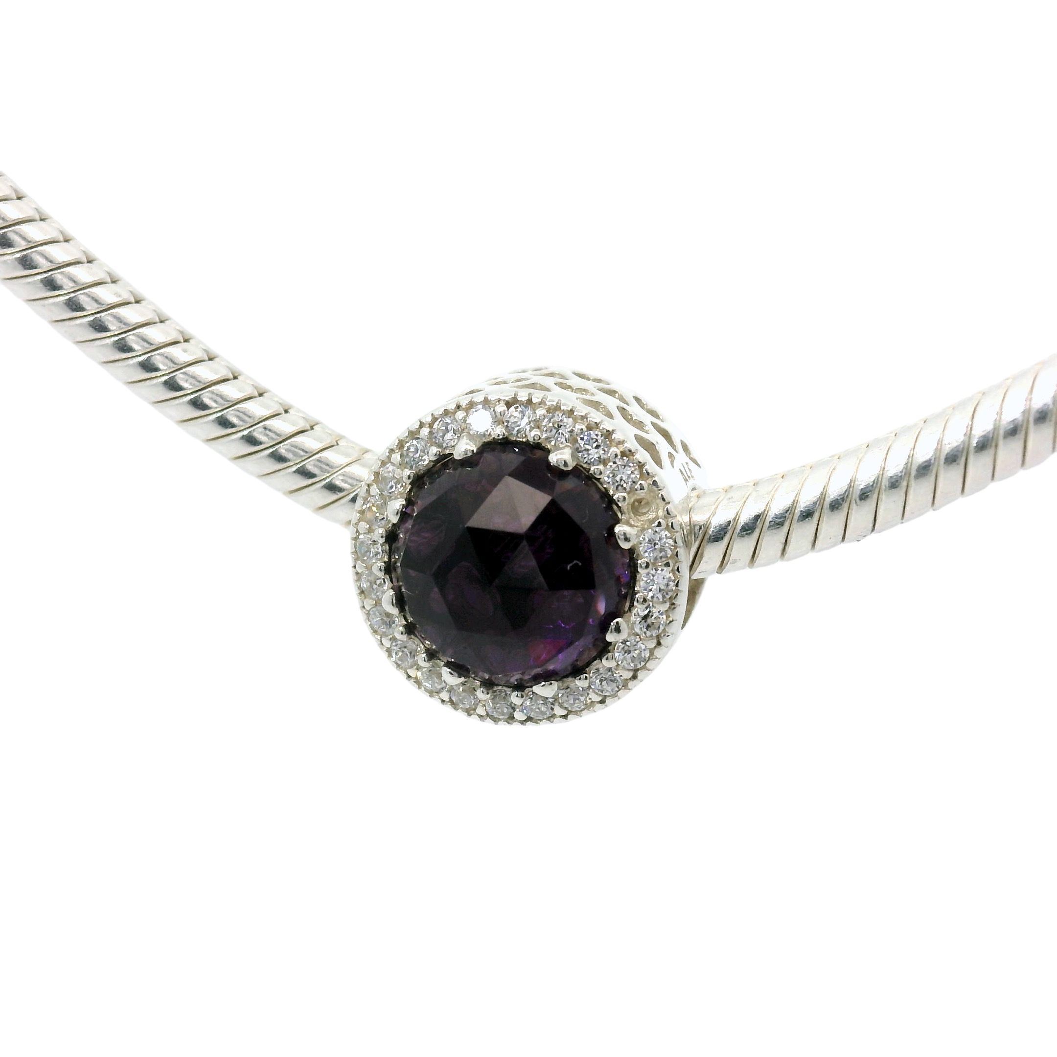 This charm features genuine PANDORA craftsmanship and a vibrant pink and purple color scheme. Perfect for adding a touch of color to any PANDORA bracelet, this charm boasts a big stone at its center for a statement-making piece. Elevate your jewelry collection with this dazzling addition.