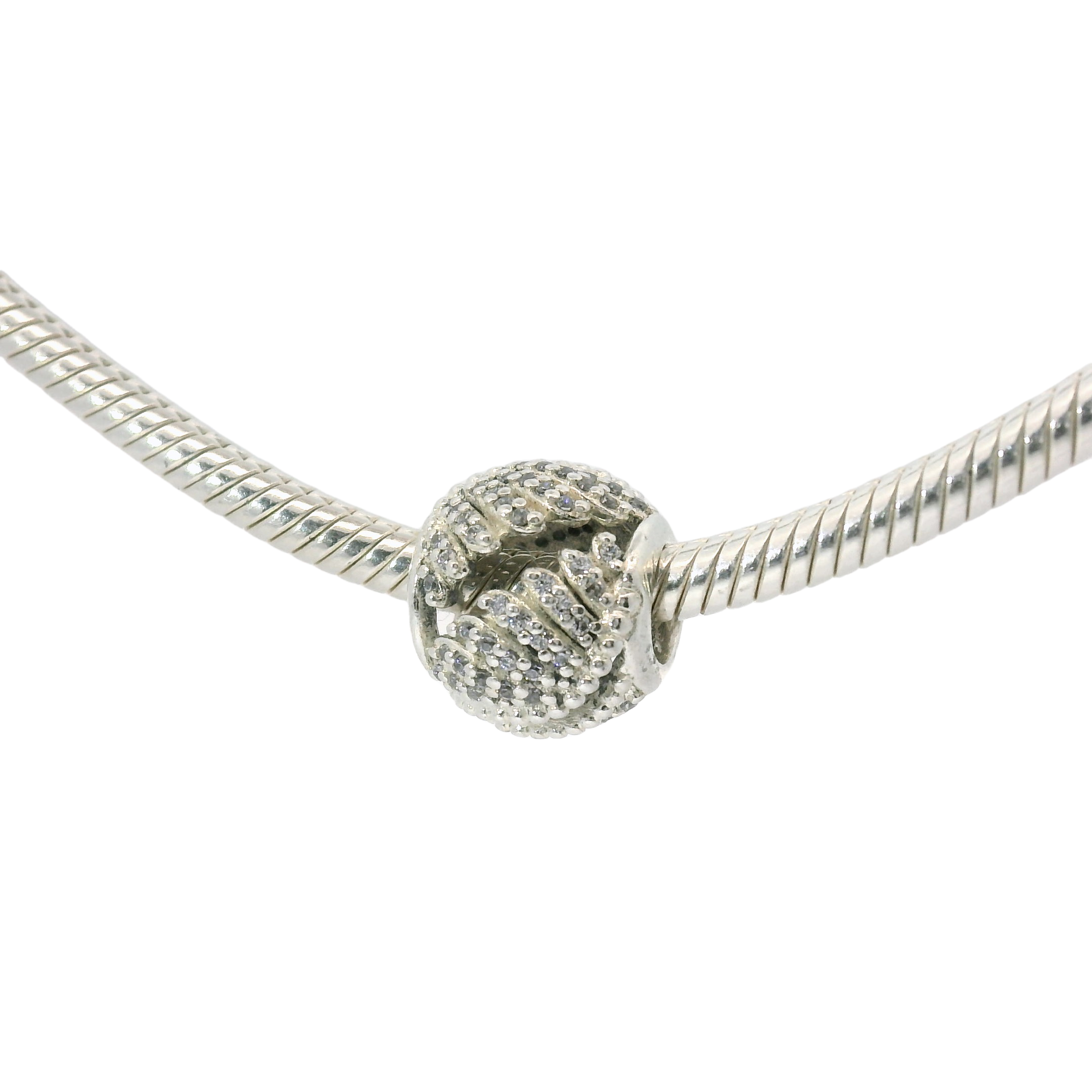 Introducing the Genuine PANDORA 791749CZ Majestic Feathers Slide Bead Only - the perfect addition to your PANDORA charm bracelet. Expertly crafted with high-quality materials and adorned with intricate feather details, this bead adds a touch of elegance to any outfit. Elevate your charm game with this stunning piece.