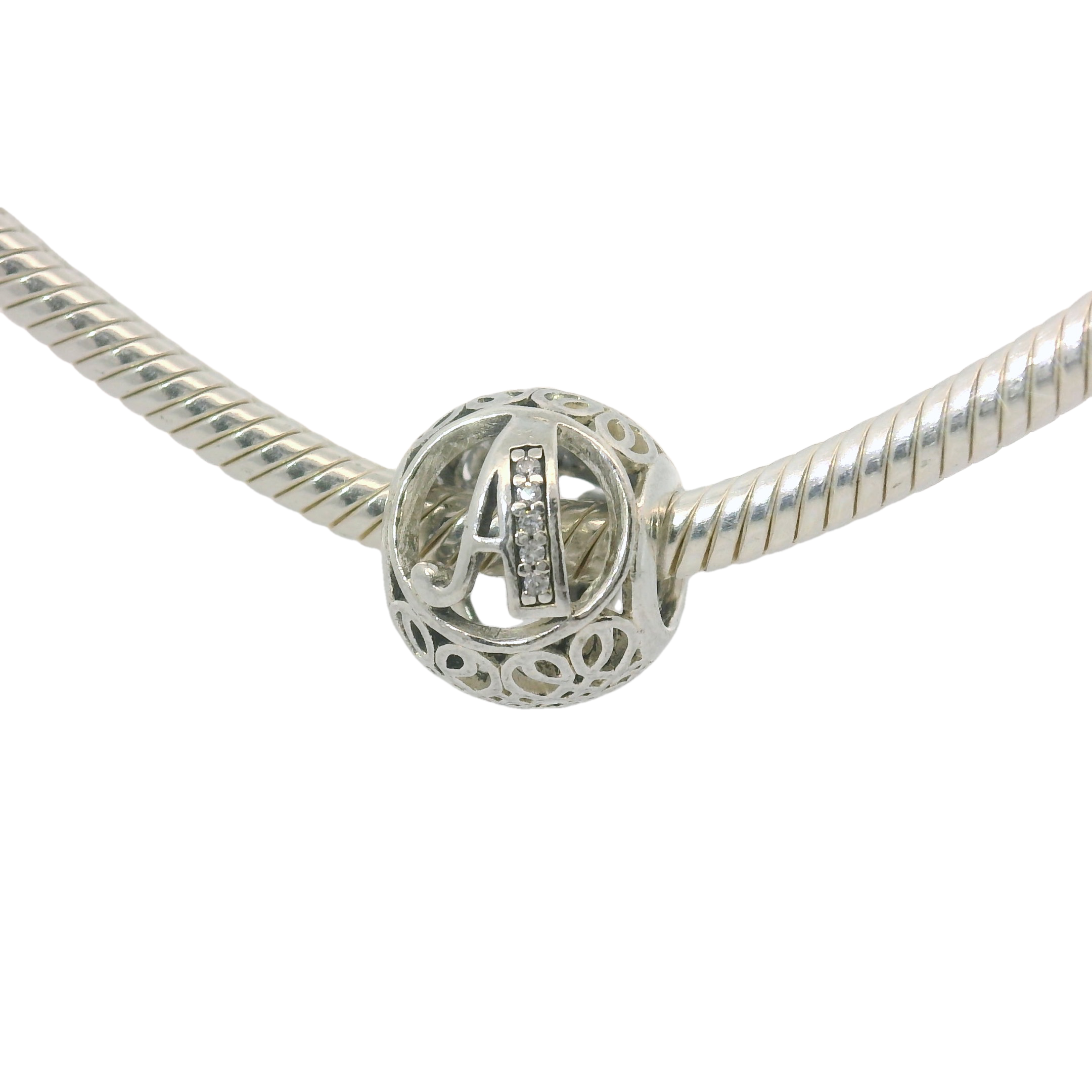 Elevate your PANDORA charm collection with this Genuine PANDORA 791850CZ Vintage A Sterling Silver Letter Charm. Made from high-quality sterling silver, this vintage-inspired charm features elegant CZ embellishments. Perfect for personalizing and adding a touch of glamour to your bracelet. Upgrade your style today.