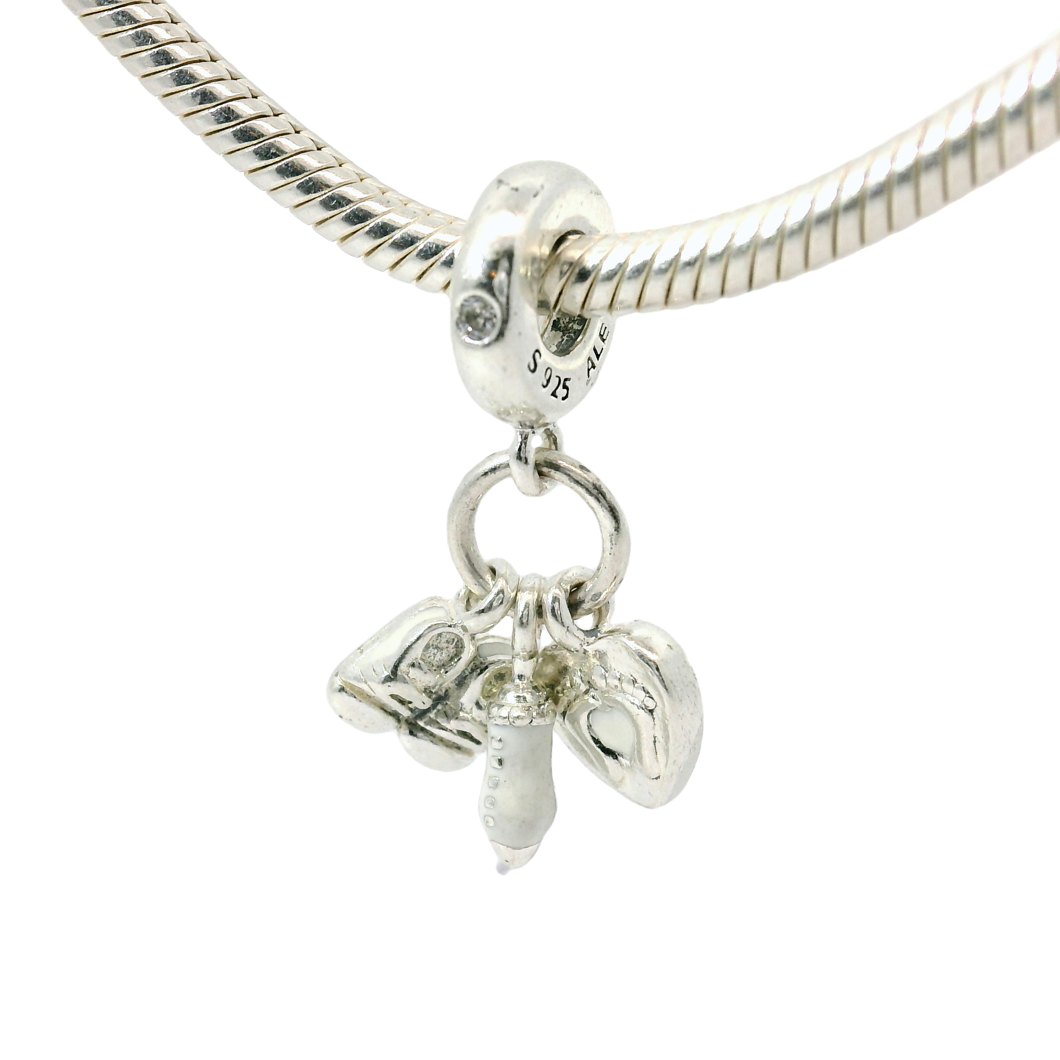 Elevate your style with the Genuine PANDORA 798106CZ Baby Bottle & Shoes Dangle Charm. Crafted with quality materials, this charm features a sweet combination of a baby bottle and shoes. Perfect for new mothers or anyone who loves adorable accessories. Add it to your PANDORA collection for a touch of cuteness and elegance.