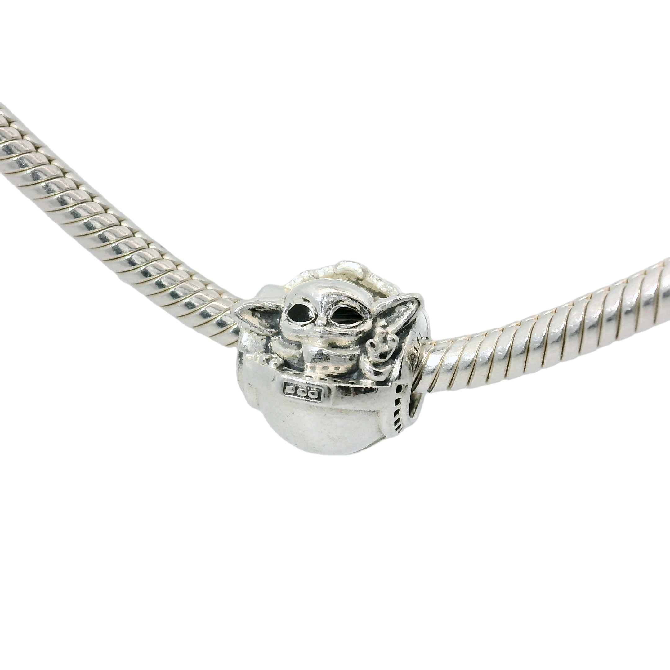 This genuine PANDORA 799511C01 Silver Baby Yoda Charm is the perfect addition to any PANDORA charm collection. Made of high-quality silver, this charm showcases the beloved character Baby Yoda from the hit TV series The Mandalorian. A must-have for any fan, this charm is a stylish and playful way to show your love for the Star Wars universe.