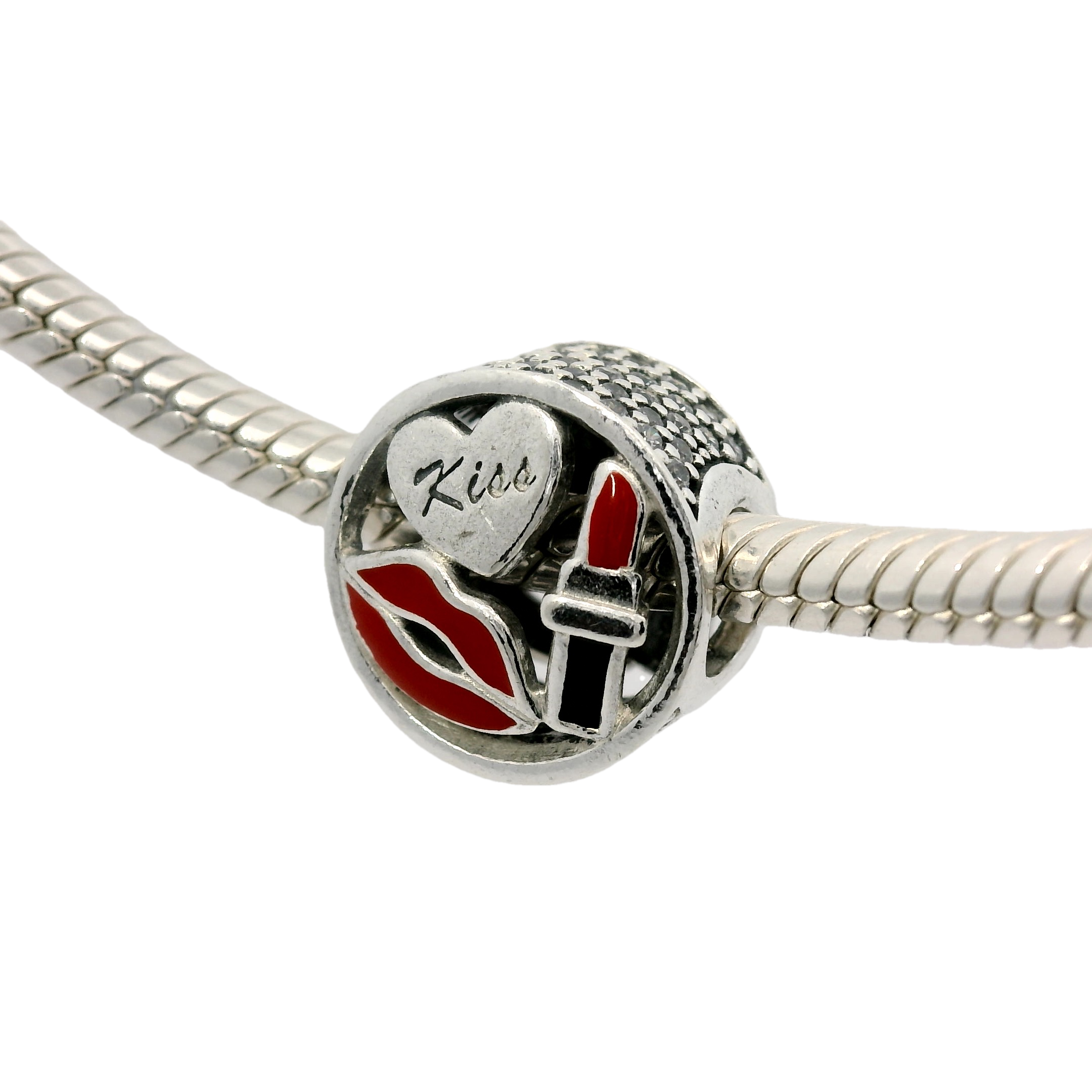 This delightful silver charm captures the essence of romance with its playful kiss motif. Adorned with vibrant red lips and a lipstick design, it adds a touch of whimsy to any bracelet. Perfect for expressing love or celebrating special moments, this charm is a must-have for jewelry enthusiasts.
