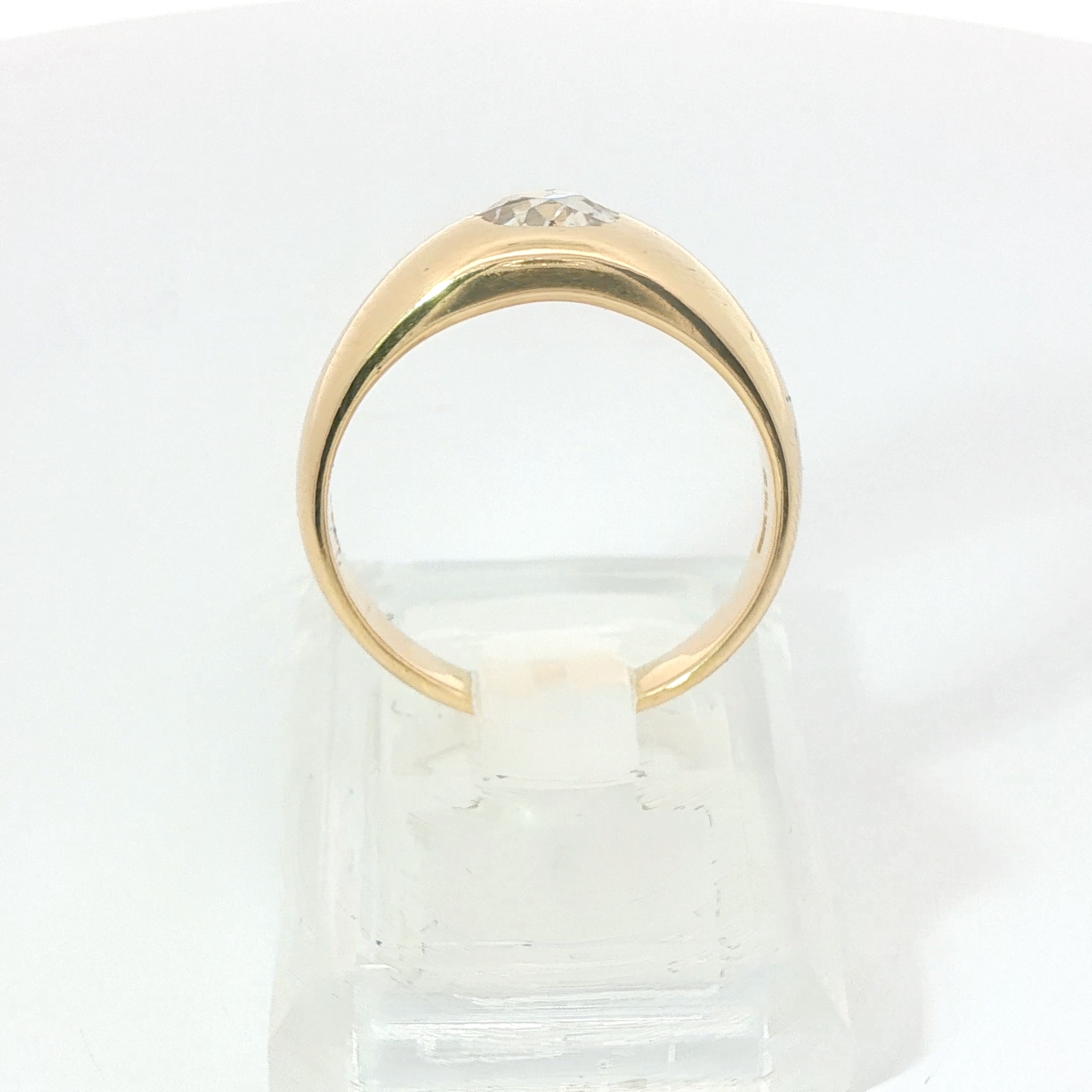 This exquisite 18-carat yellow gold ring features a 1-carat SI clarity H colour diamond set using a secure rub-over setting. Designed in size Q, it offers a classic yet elegant style, perfectly balancing durability with refined sophistication. Ideal for those valuing both expert craftsmanship and timeless appeal.