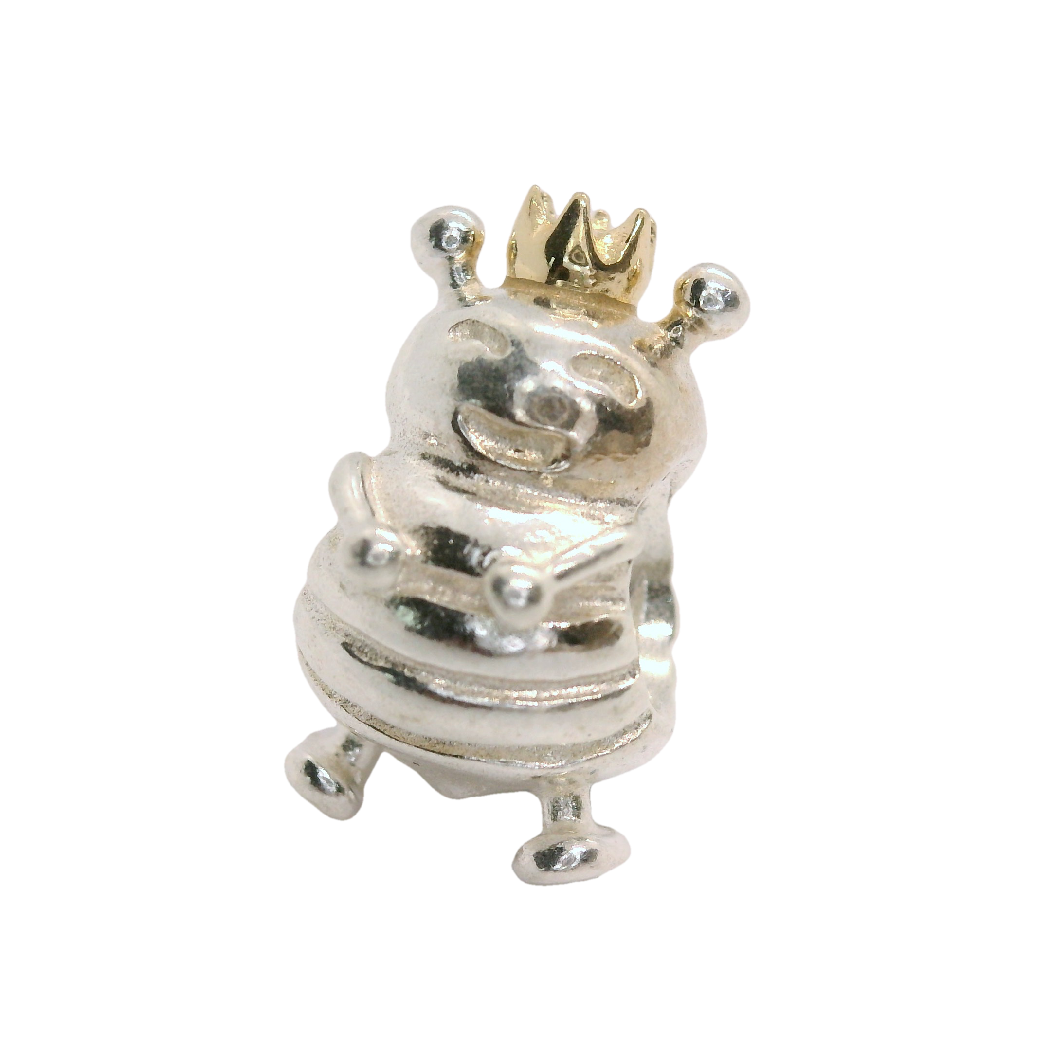 This delightful silver bee charm, crowned with a golden 14ct tiara, adds a touch of whimsy to any collection. Its playful design and shiny finish make it a perfect accessory for those who love unique and charming pieces. Ideal for bracelets or necklaces, this charm is sure to bring a smile to your face.
