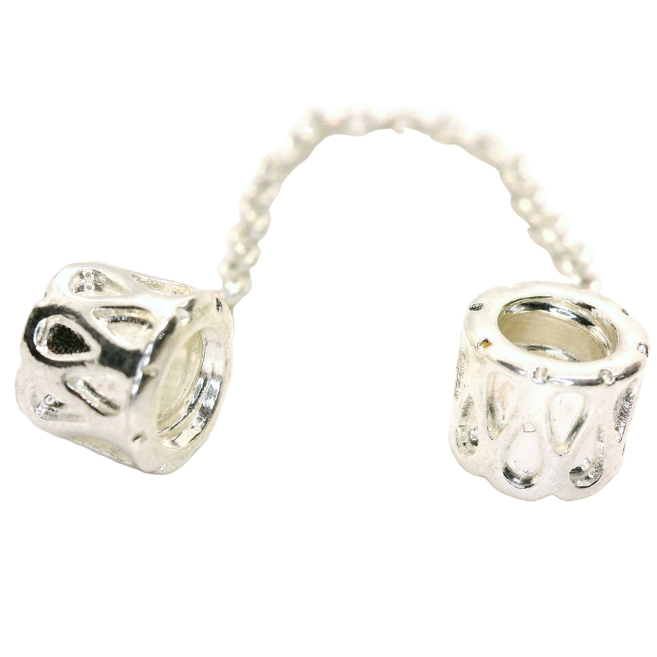 This image showcases a pair of intricately designed silver chain connectors, perfect for adding a touch of elegance to any jewellery piece. The delicate craftsmanship and polished finish make these connectors a versatile addition to your collection, ideal for creating custom necklaces or bracelets.