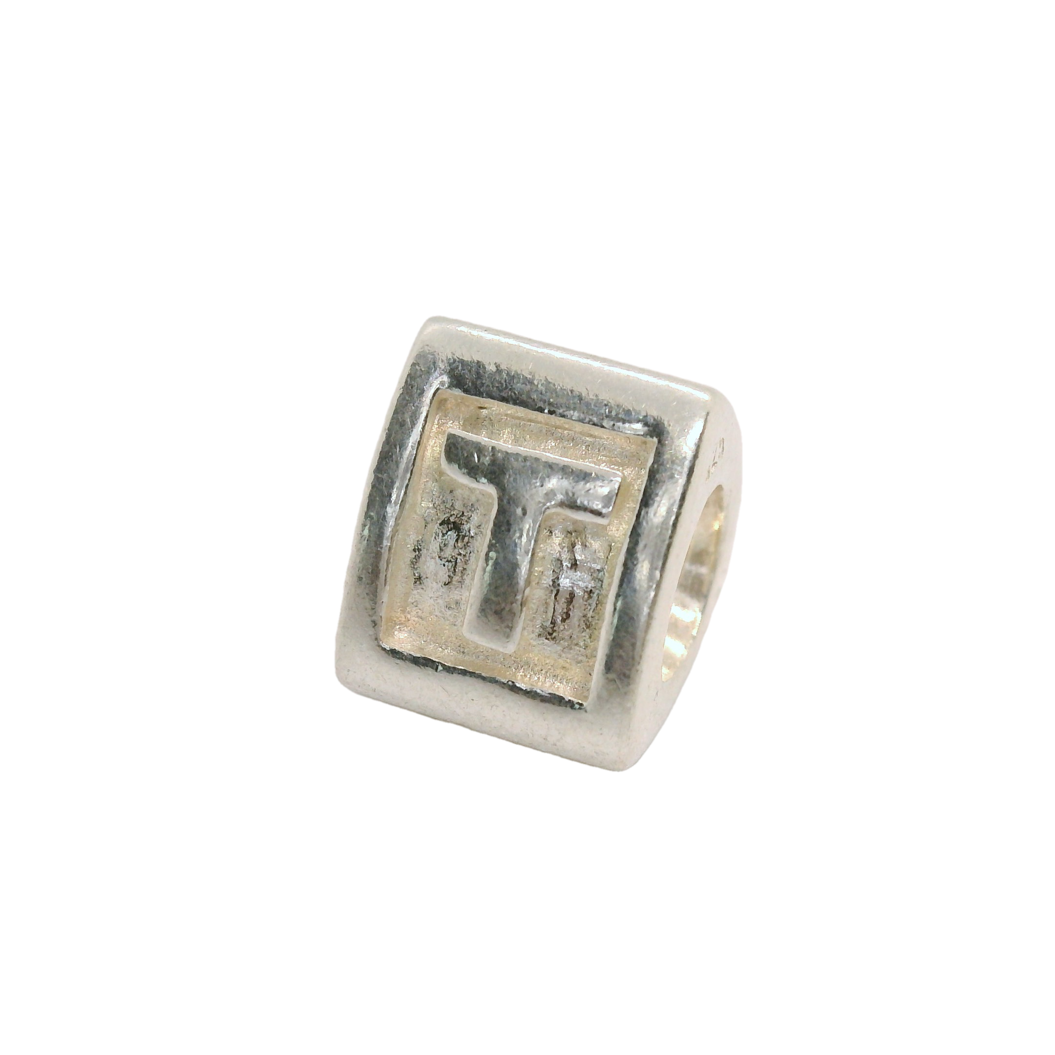 This elegant silver bead features a beautifully engraved letter 'T', perfect for adding a personal touch to your jewelry collection. Its sleek design and polished finish make it a versatile piece that can be easily incorporated into any bracelet or necklace. Ideal for those who appreciate subtlety and sophistication.