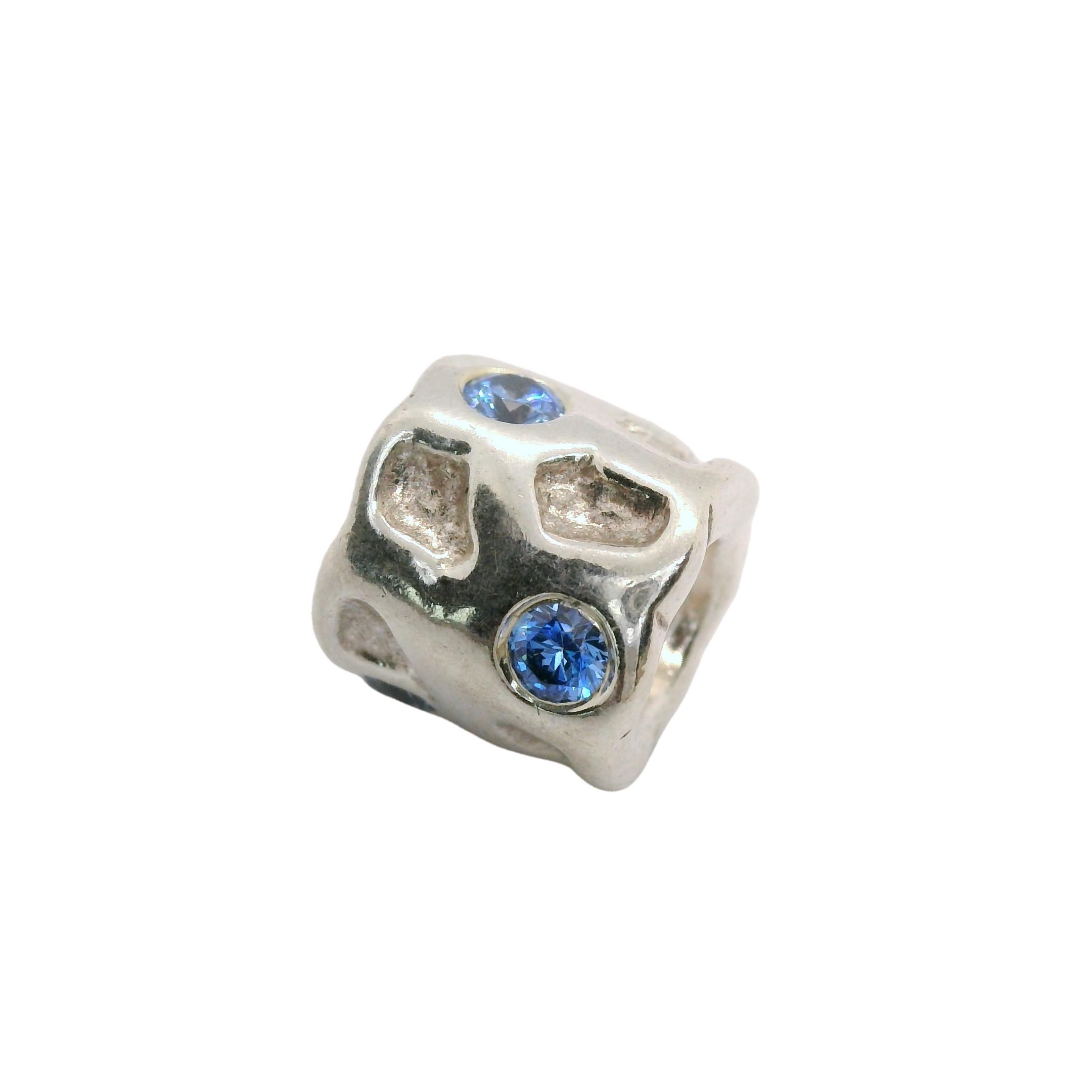 This exquisite silver charm is adorned with vibrant blue cubic zirconia's, adding a touch of elegance and sophistication to any jewellery collection. The intricate design and shimmering stones make it a perfect accessory for both casual and formal occasions.
