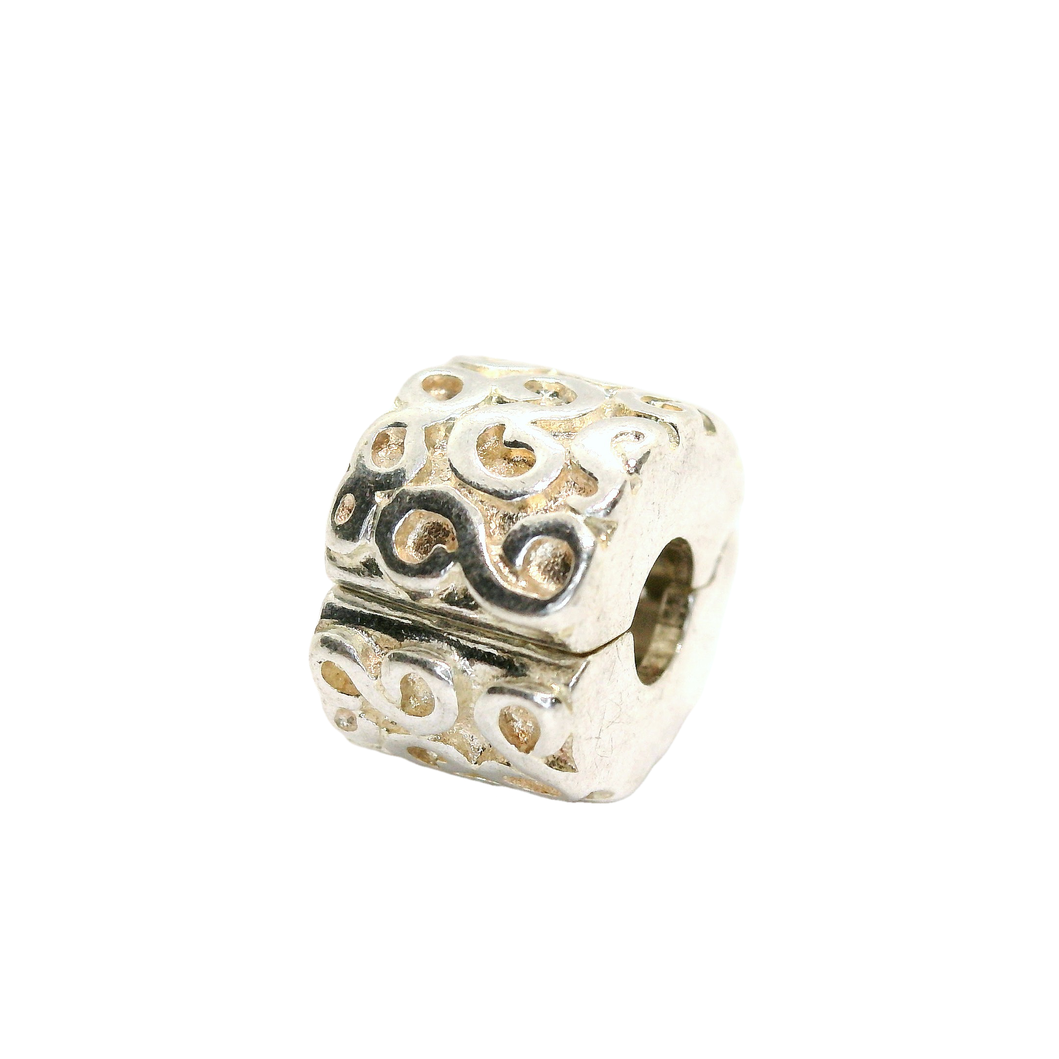 This exquisite silver bead charm features intricate "Serpentine" patterns that add a touch of elegance to any bracelet or necklace. Its polished finish and detailed craftsmanship make it a standout piece, perfect for those who appreciate subtle sophistication in their jewellery collection.