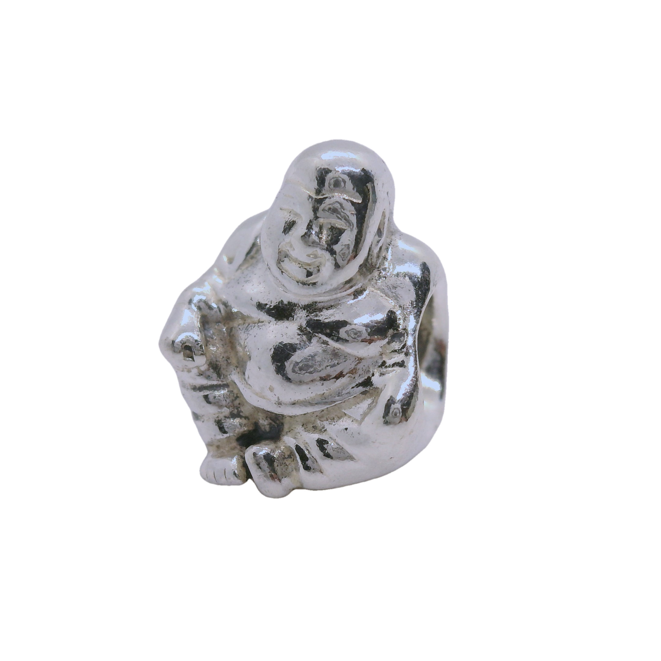 This exquisite silver Buddha charm is a symbol of peace and prosperity. Crafted with intricate details, it captures the serene expression and traditional posture of the Buddha, making it a perfect addition to any jewellery collection. Ideal for those seeking a touch of spirituality in their accessories.