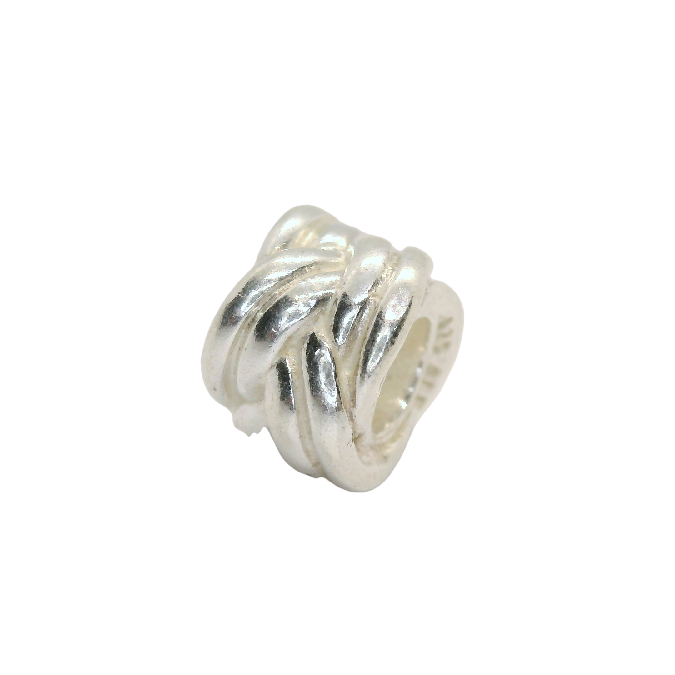 This exquisite silver charm features a unique twisted design, perfect for adding a touch of elegance to any outfit. Its polished finish and intricate craftsmanship make it a standout piece for both casual and formal occasions.