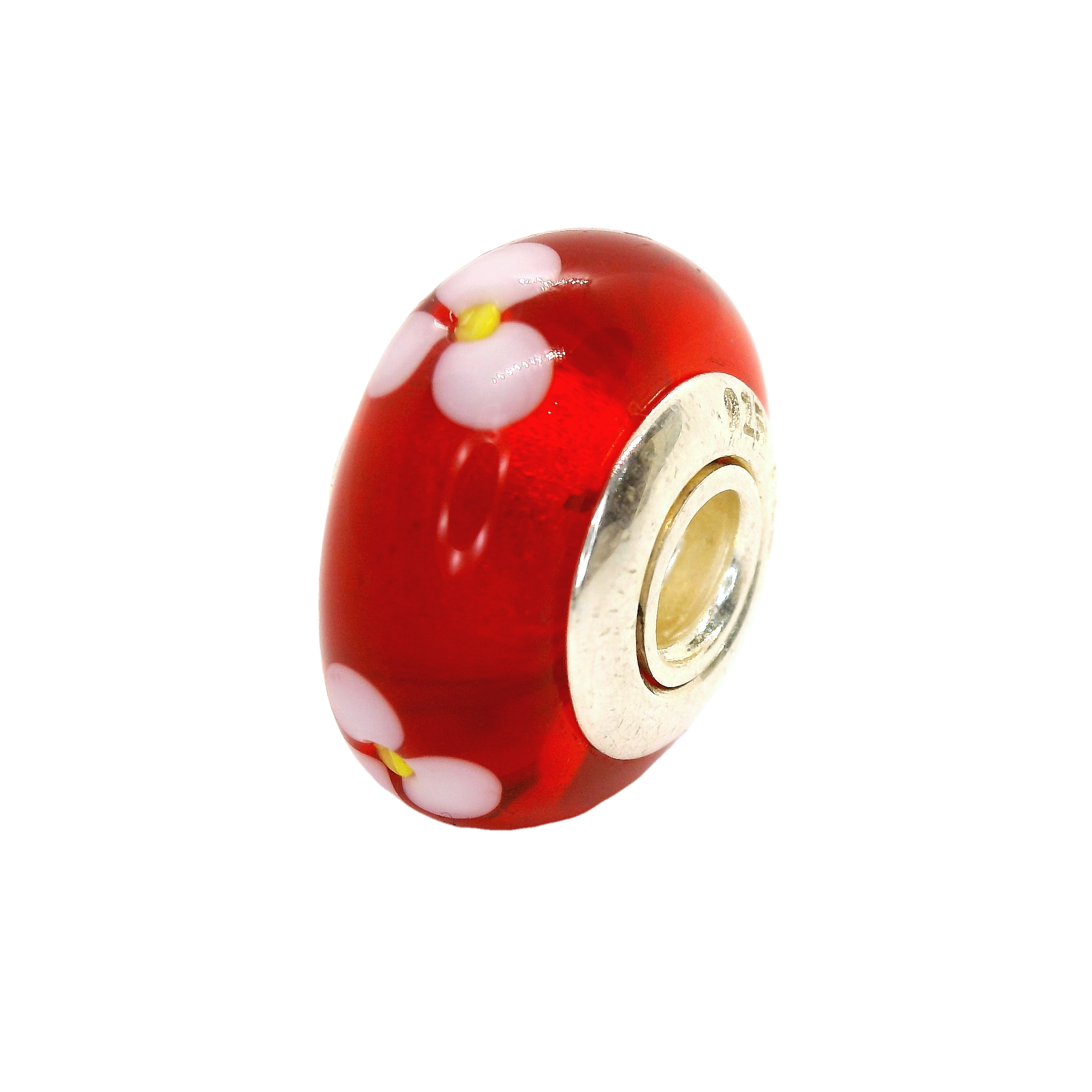 This vibrant red bead features delicate white floral patterns, perfect for adding a touch of elegance to any jewellery piece. Its glossy finish and intricate design make it a standout addition to your collection.