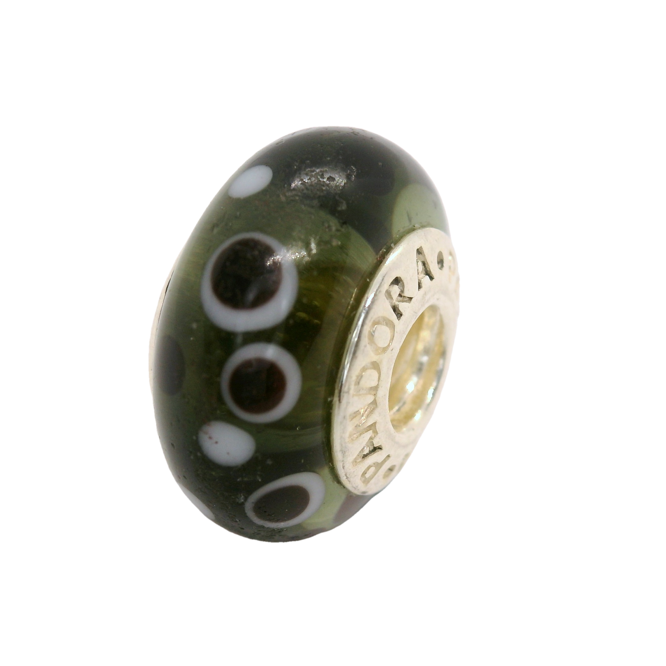 This exquisite green charm bead is a perfect addition to any jewellery collection. Its deep green hue is beautifully complemented by delicate white and black circular patterns, creating a sophisticated and stylish look. Crafted with precision, this bead is designed to fit seamlessly onto your favourite bracelet or necklace, adding a touch of elegance and personality to your ensemble.