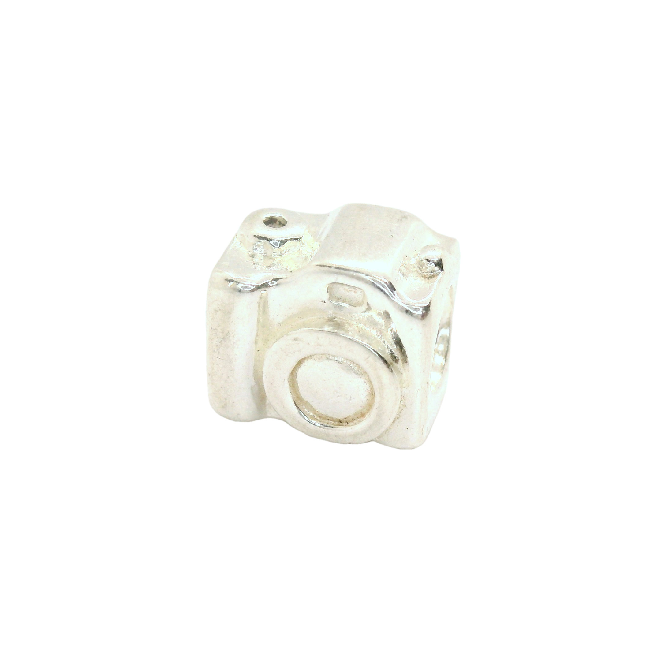 This exquisite silver charm is crafted in the shape of a classic camera, perfect for photography enthusiasts. Its intricate details capture the essence of vintage cameras, making it a unique accessory for any charm bracelet or necklace.