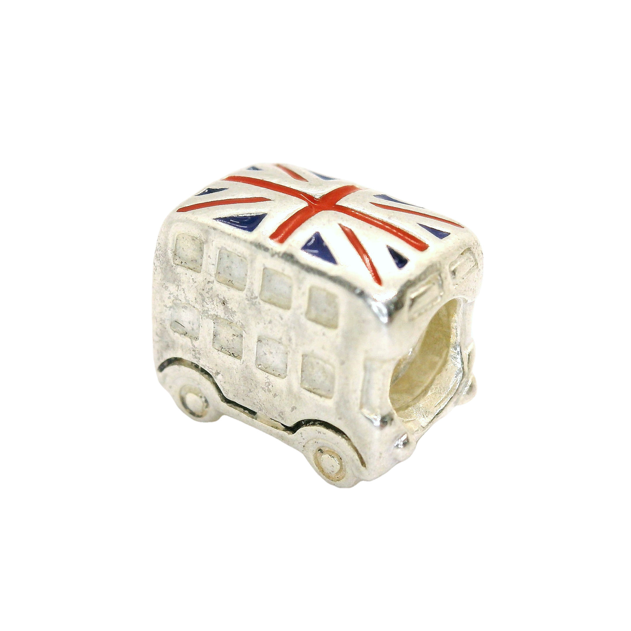 This charming silver bead captures the essence of British culture with its adorable bus design, topped with the iconic Union Jack. Perfect for adding a touch of London flair to your bracelet or necklace, this piece is a delightful nod to travel and adventure.