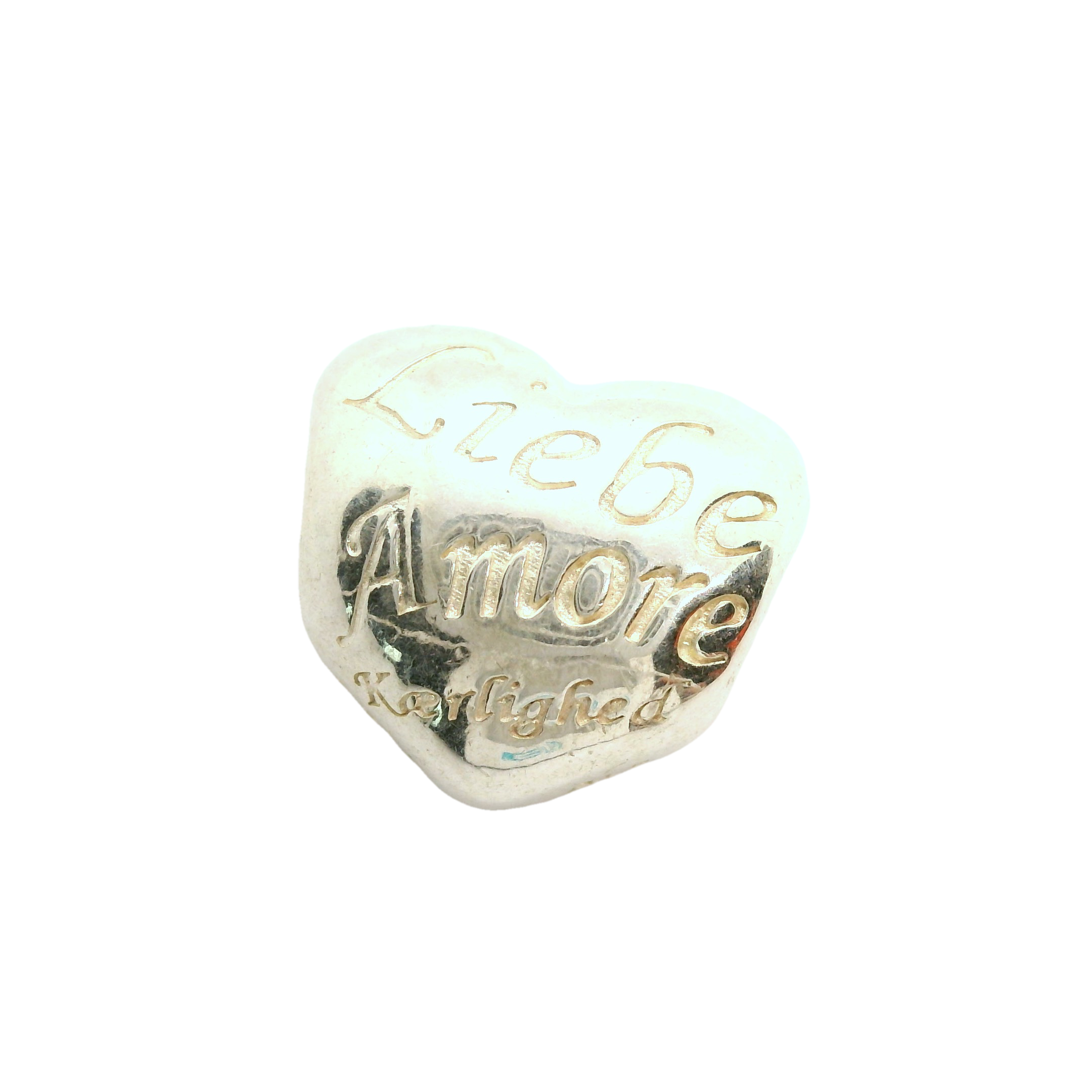 This exquisite heart-shaped silver charm is a timeless piece that speaks the universal language of love. Engraved with the words 'Liebe', 'Amore', and 'Loved', it captures the essence of affection in multiple languages. Perfect for adding a touch of elegance to any bracelet or necklace, this charm is a beautiful reminder of the bonds that connect us.