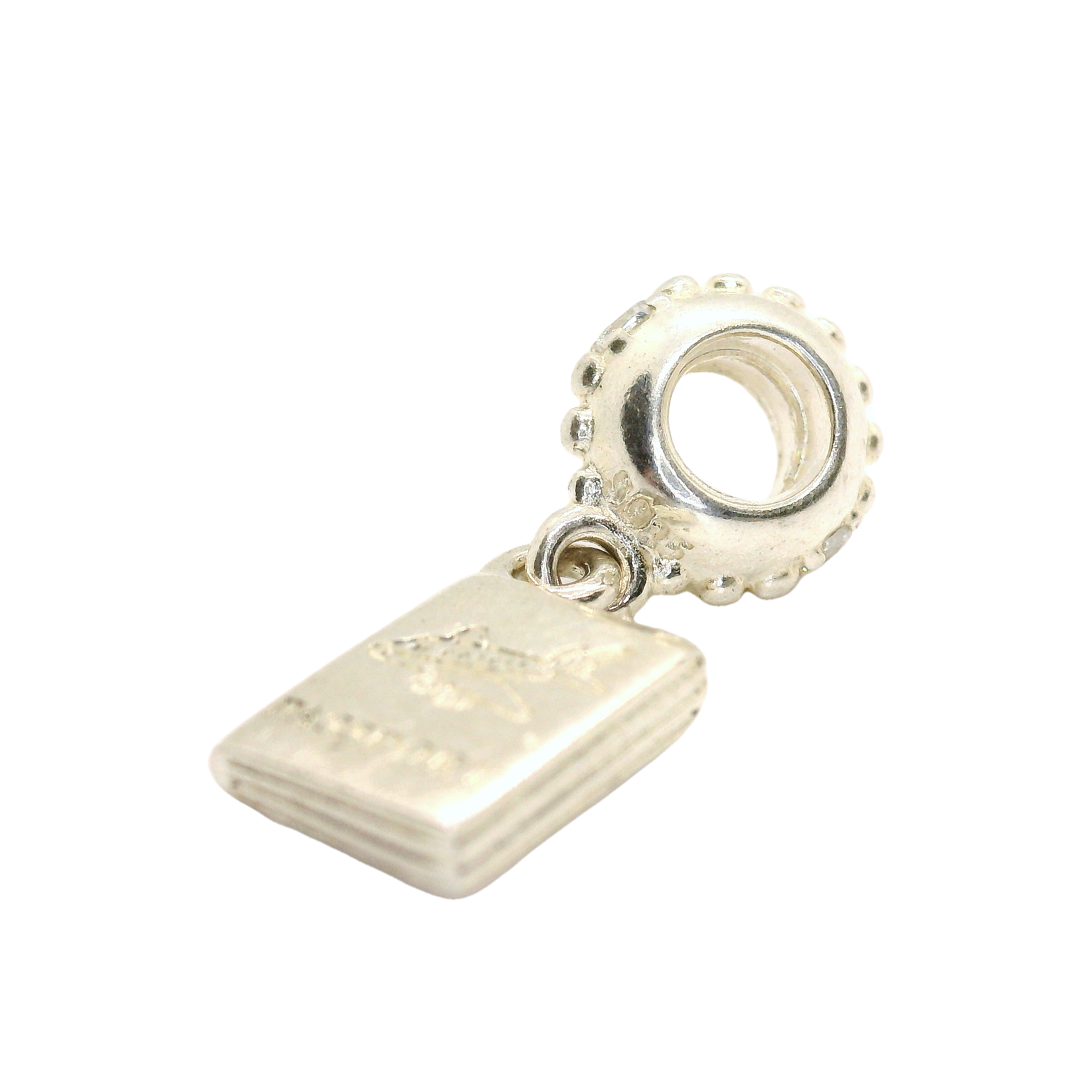 This exquisite silver pendant captures the charm of a miniature passport. Its intricate detailing and polished finish make it a standout accessory for any occasion.