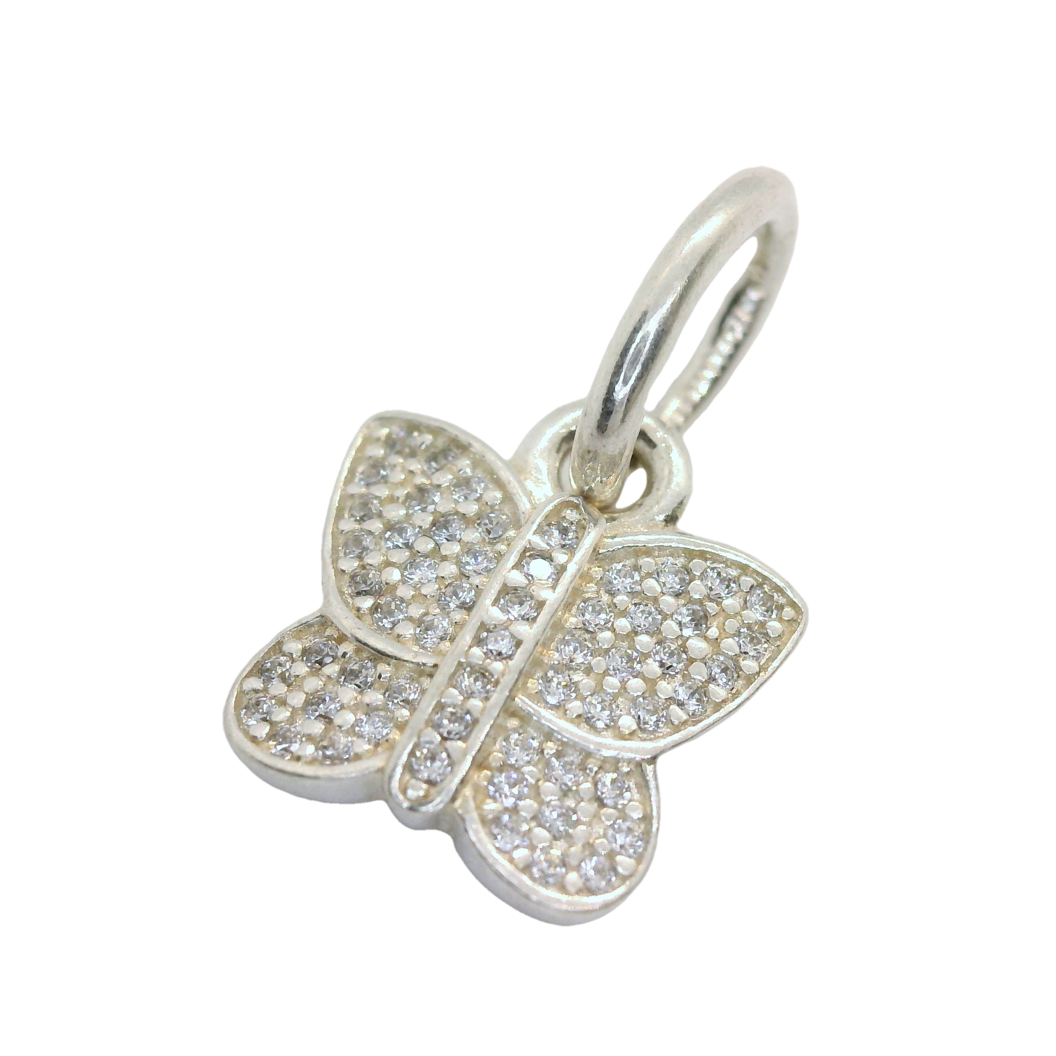 This exquisite butterfly charm captures the delicate beauty of nature with its shimmering design. Crafted with precision, the pendant features a multitude of sparkling stones that catch the light from every angle, making it a perfect accessory for any occasion. Its elegant and timeless appeal ensures it will be a cherished piece in any jewellery collection.