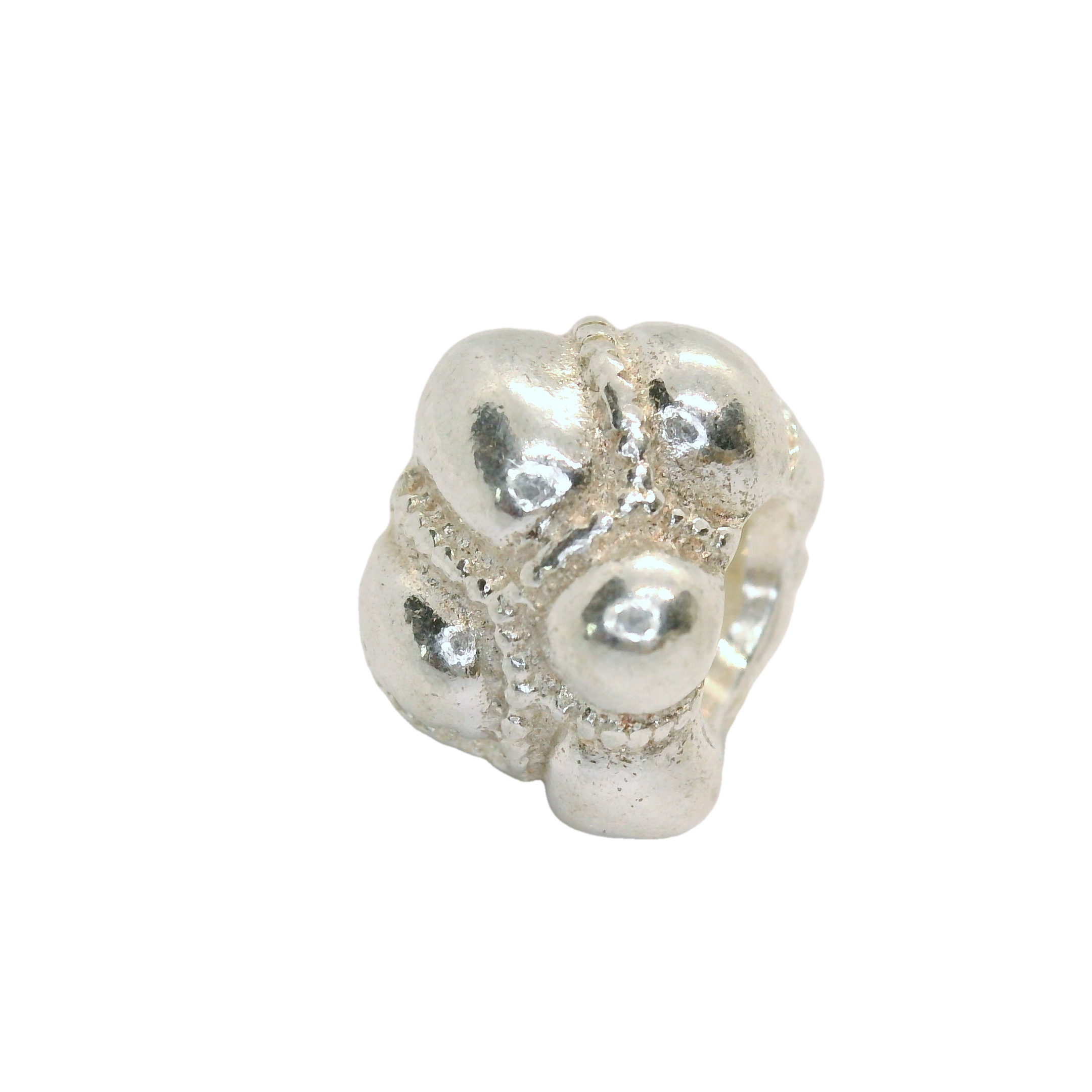 This exquisite silver charm showcases a unique design with intricate detailing, perfect for adding a touch of elegance to any outfit. Its lustrous finish and bold structure make it a standout piece for both casual and formal occasions.