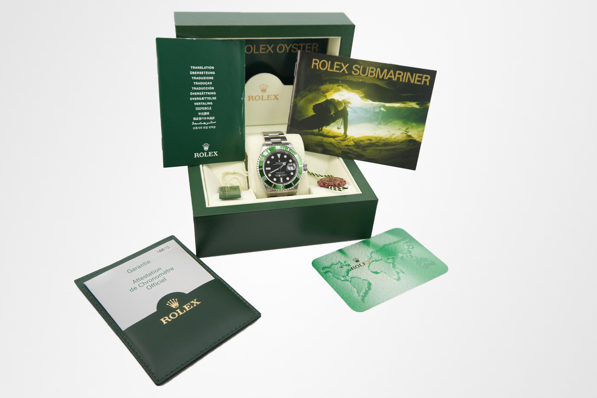 The “Kermit” holds a special place in Rolex history as the first Submariner to feature a green bezel. With its aluminium insert, slimmer case profile, and classic proportions, the 16610LV represents the last of the traditional Submariner design language before the modern ceramic era. A superb 2005 Full Set example with strong collector appeal.