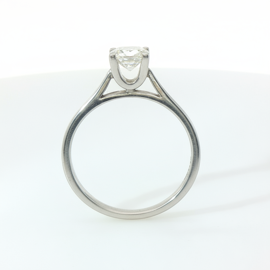This elegant 18ct white gold solitaire ring features a 0.3 carat princess cut diamond with SI1 clarity and G colour grading. Expertly crafted to showcase the diamond’s brilliance, the design offers timeless sophistication. Perfectly sized at I ½, it combines classic style with enduring quality, ideal for those seeking refined luxury in a subtle yet striking piece.